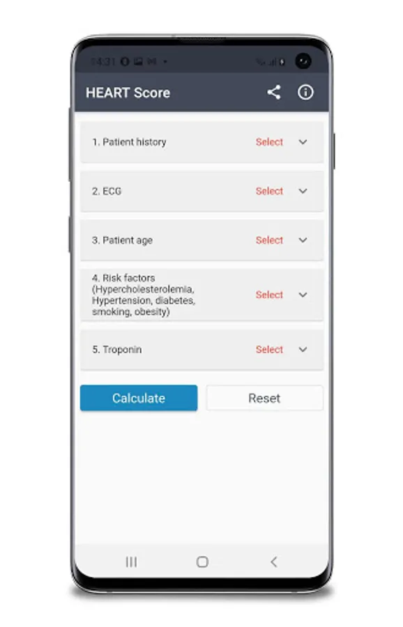The five risk factors chosen as most relevant for risk stratification were: History, ECG, Age, Risk factors and Troponin.
