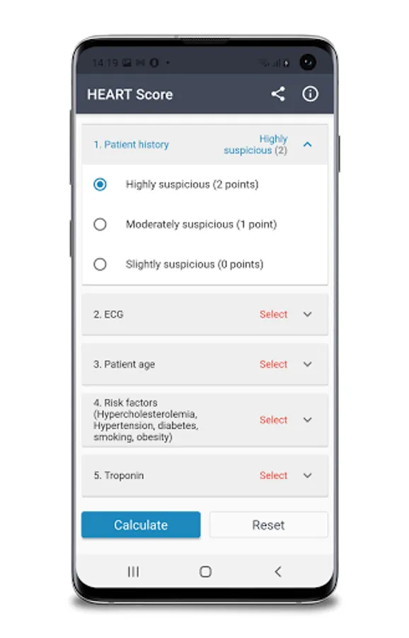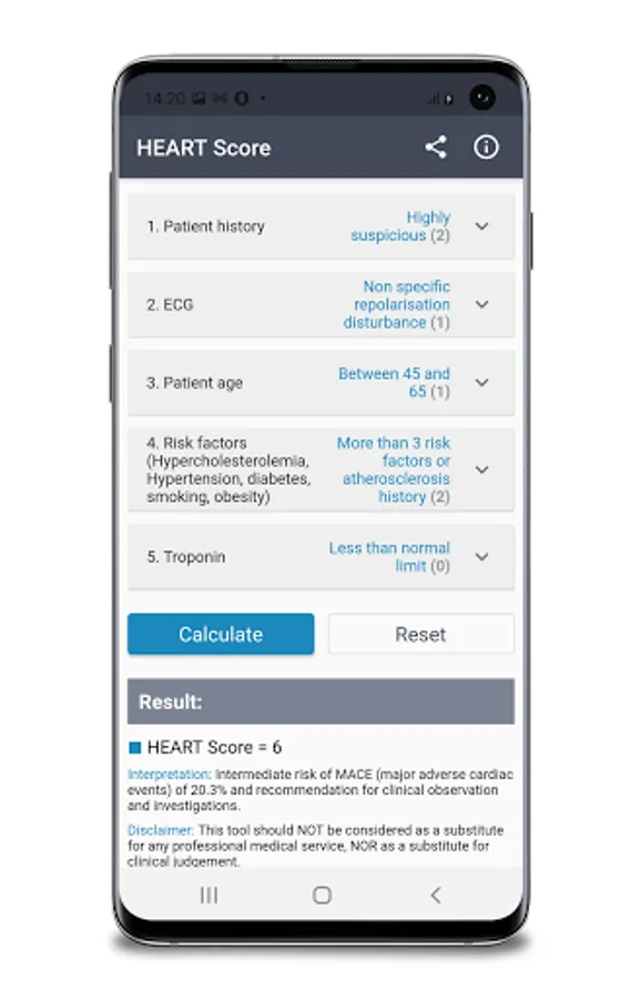 The HEART score resulted after a study conducted by Six et al. in 2008. Data from 122 patients referred to the emergency room for chest pain was analysed.