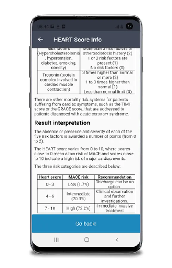The HEART score varies from 0 to 10, where scores close to 0 mean a low risk of MACE and scores close to 10 indicate a high risk of major cardiac events.