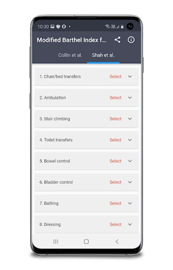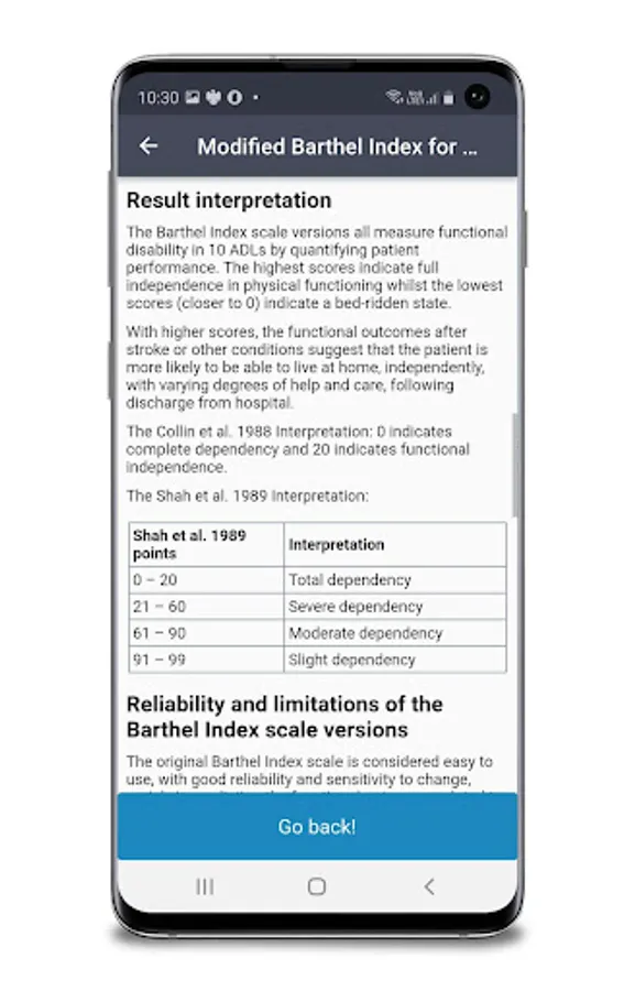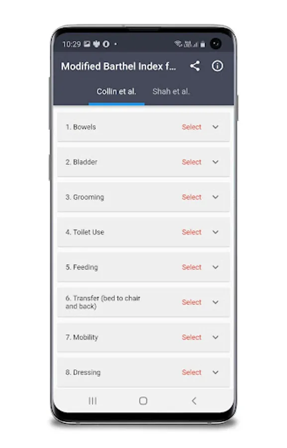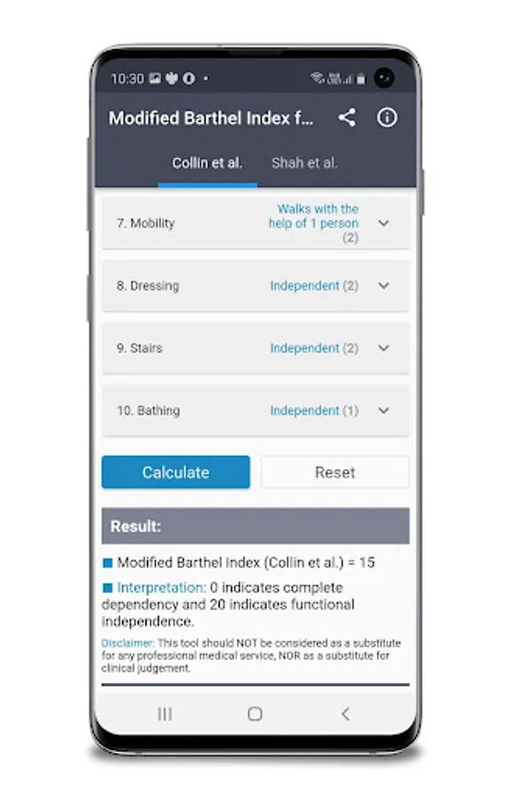 This Modified Barthel Index app assesses functional disability based on 10 activities of daily life (ADLs).