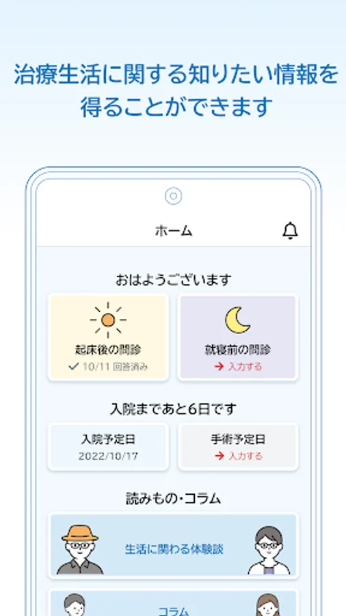 The app contains information on preparations for hospitalization, how to spend time after discharge, and information on the experiences of people who have already undergone lung cancer surgery, so you can understand surgery and life after discharge at your own pace. increase.