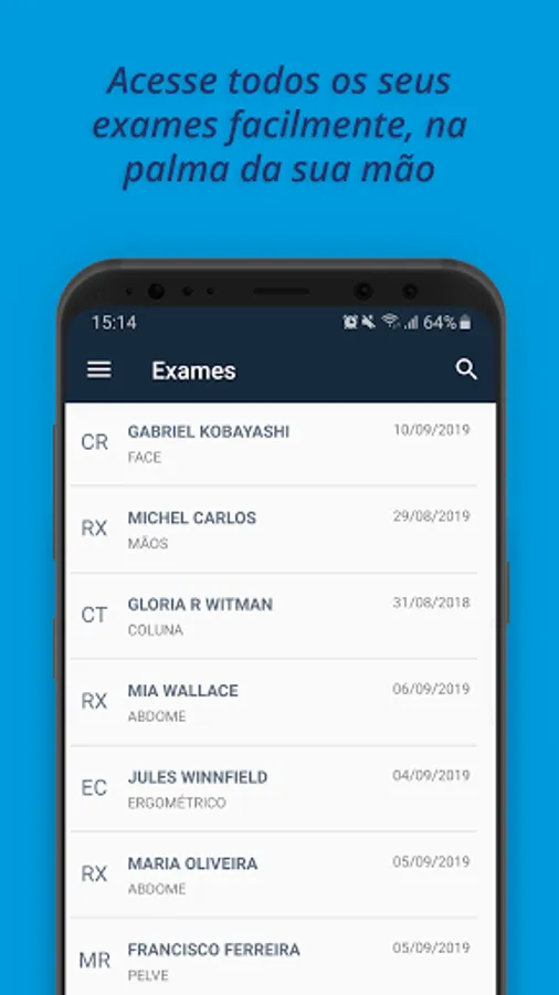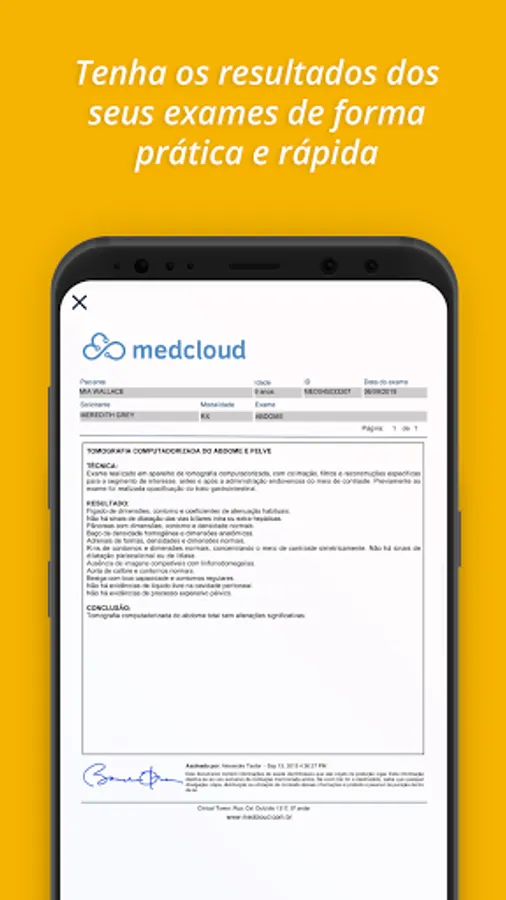 With the Medcloud app, the patient accesses images and reports on the smartphone from anywhere, with quality and safety. And, it gathers all the clinical history of exams in one place.