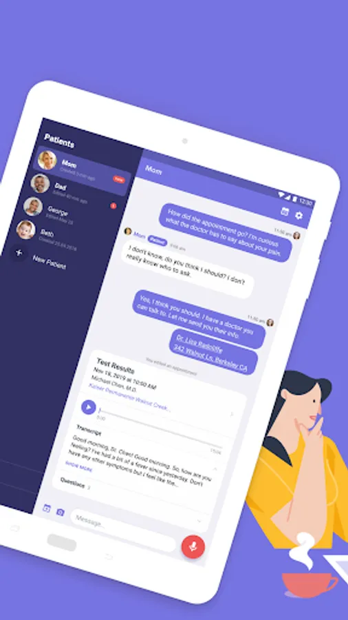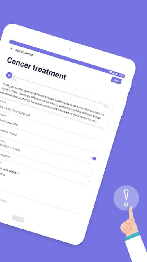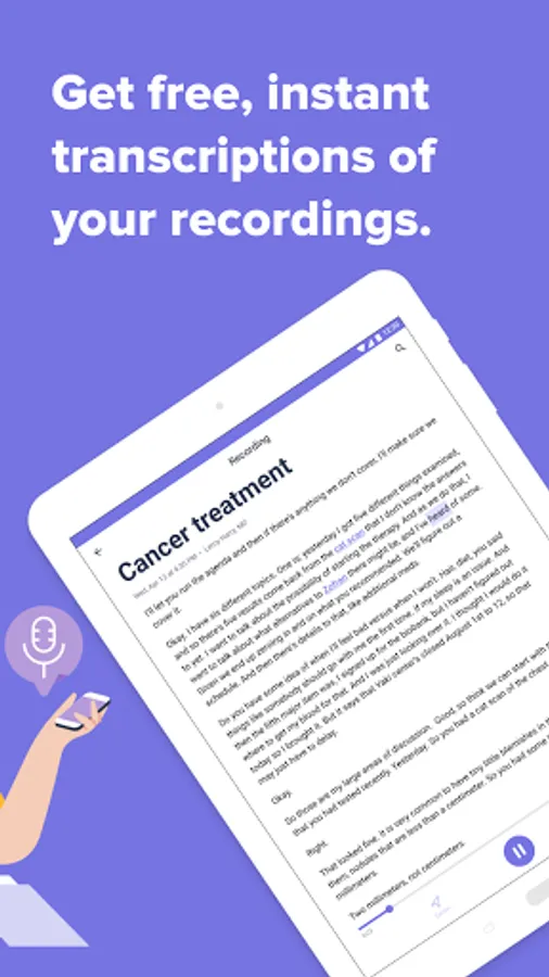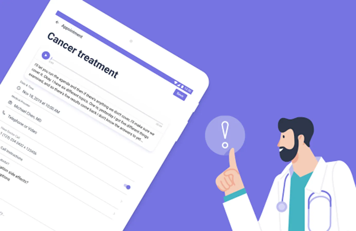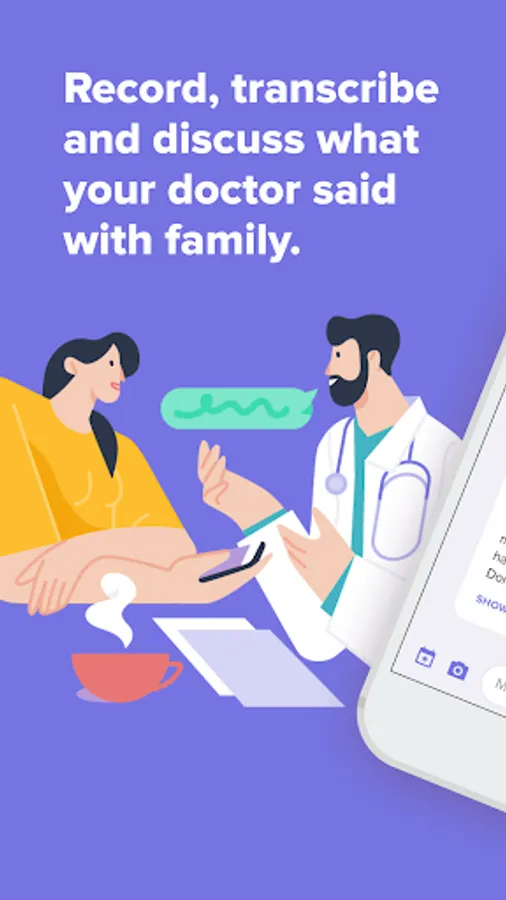 Medcorder is the only app built to help you keep your family in the loop with an evolving medical situation. With one tap you can record, transcribe, share, and discuss a medical visit with others. We'll give you a free transcript and let your family know right away to keep them in the loop. They can hear in your doctor's own words what's happening and chat with you in the app.