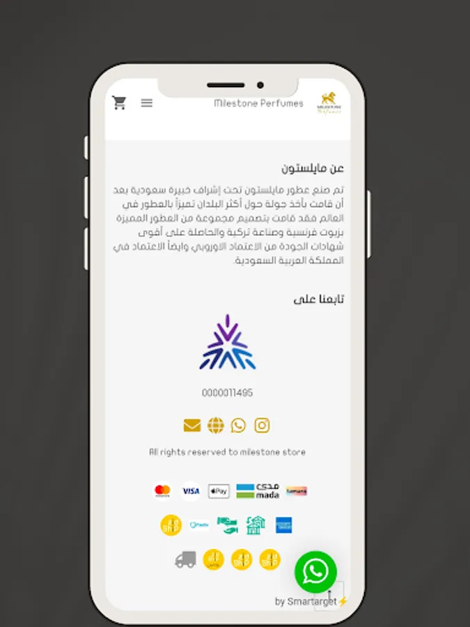 Milestone perfumes were created under the supervision of a Saudi expert after she took a tour around the most distinguished countries for perfumes in the world. She designed a group of distinctive perfumes with French oils and Turkish manufacture that obtained the strongest quality certificates from European accreditation and also accreditation in the Kingdom of Saudi Arabia.