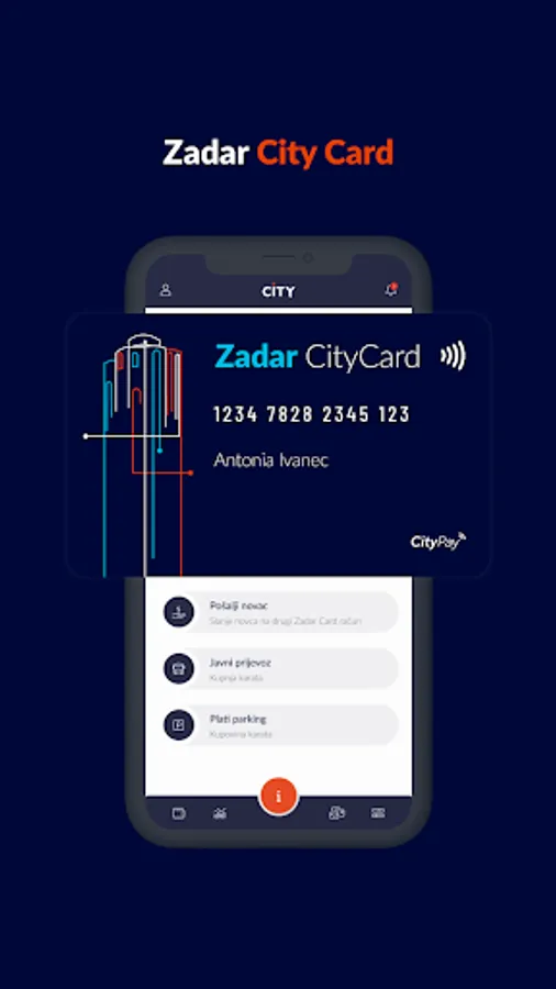 paying for transport with a Citycard card that is stored in the application.