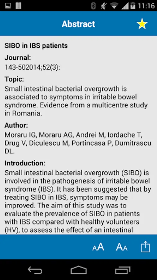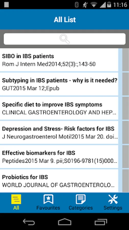 The IBS care App aims to bring for the benefit of practicing Gastroenterologists and physicians, the latest information pertaining to Irritable Bowel Syndrome. Presently the App would bring to you abstracts from all leading global journals on the subject.