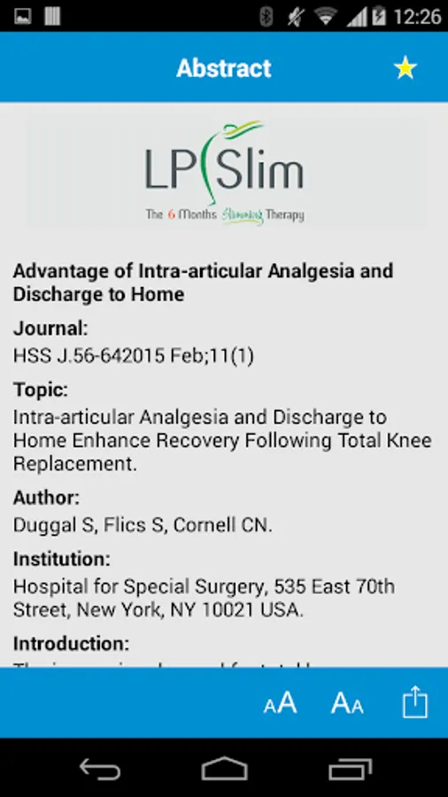 The Eterna Ortho App aims to bring for the benefit of practicing Orthopaedicians and Orthopaedic Surgeons, the latest developments pertaining to the specialty of Orthopaedics. Presently the App would bring to you abstracts from all leading global journals on the subject.