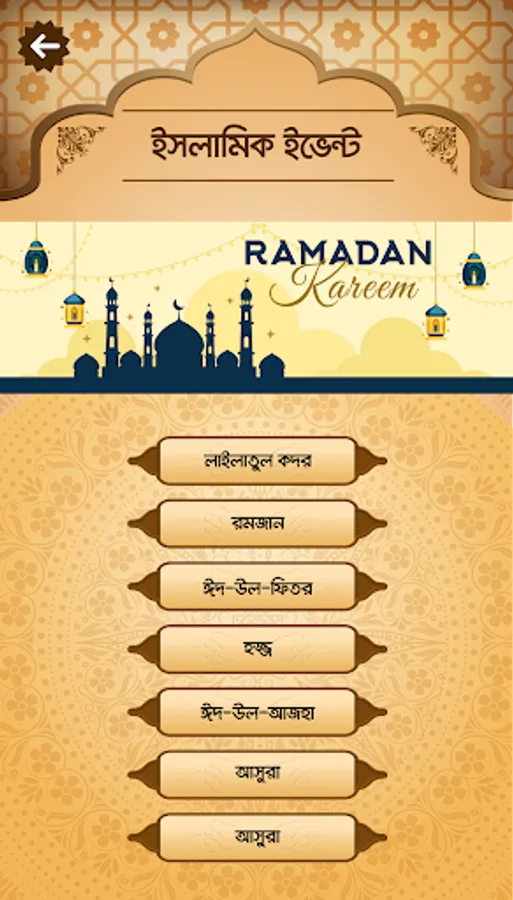 >>> 99 Names of Allah: The App user will be able to know the 99 names of Allah (Al Asma Ul Husna) - with meaning and fazilat.