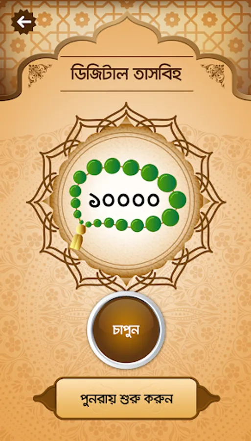 >>> Tasbeeh: The App user will be able to save count with smart Zikirs. This application is designed as a real Tasbeeh counter.