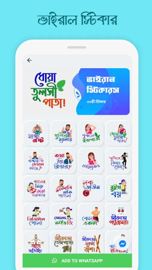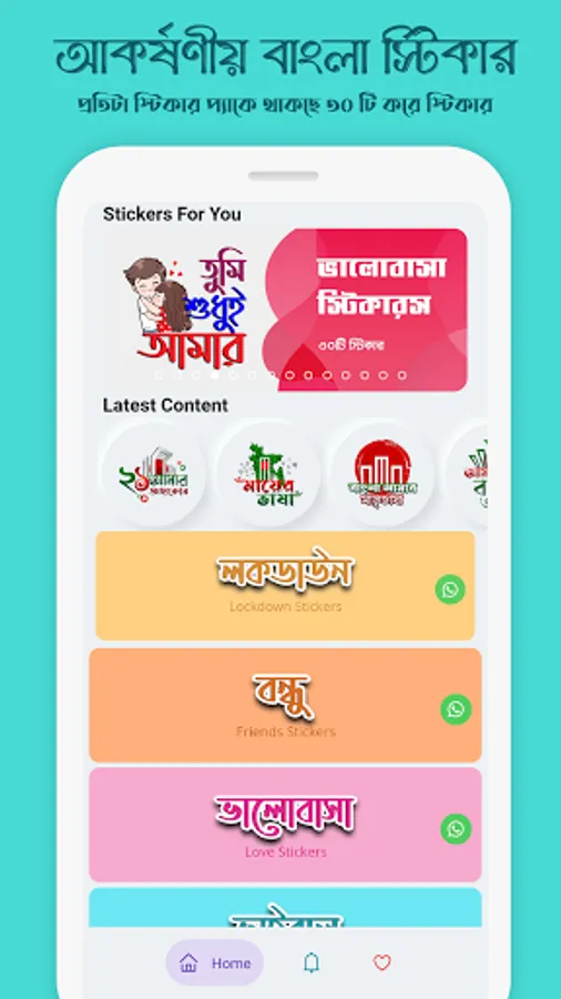 If you are looking for a BANGLA Stickers app for WhatsApp to express with a different way to prompt your feelings in BANGLA here is mSticker app with a large collection of BANGLA HD stickers. Now shock your friends using ultimate stickers pack.