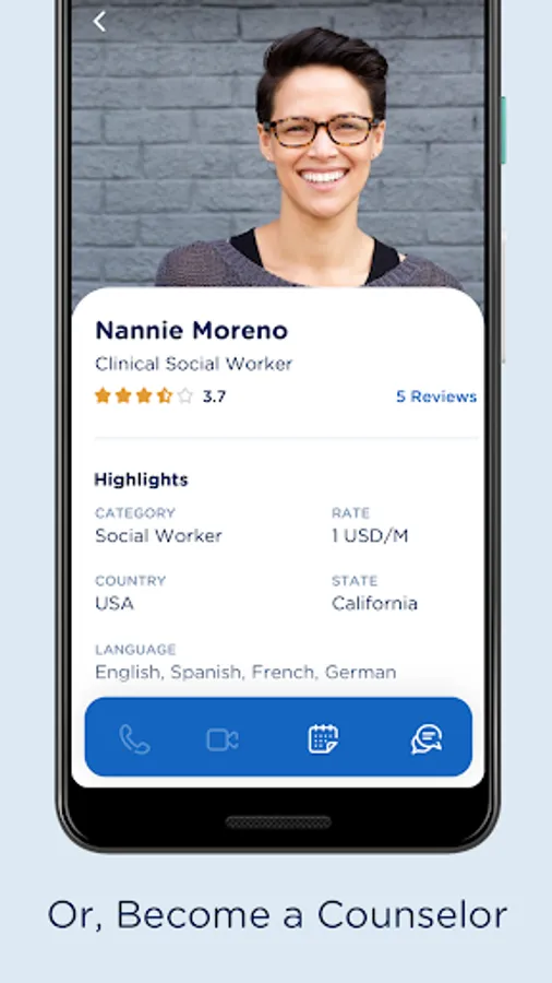 Clients can find a counselor by searching skills or professions. Each session priced based on counselors provided rate and there are no additional charges for using Kounsel app. You can pay for your session right from the app using a linked PayPal account or credit card. Use our phone service without worrying about International charges, even when you are traveling abroad. Our free instant messaging service designed to make sure you are connected with the right counselor before you start paid sessions.