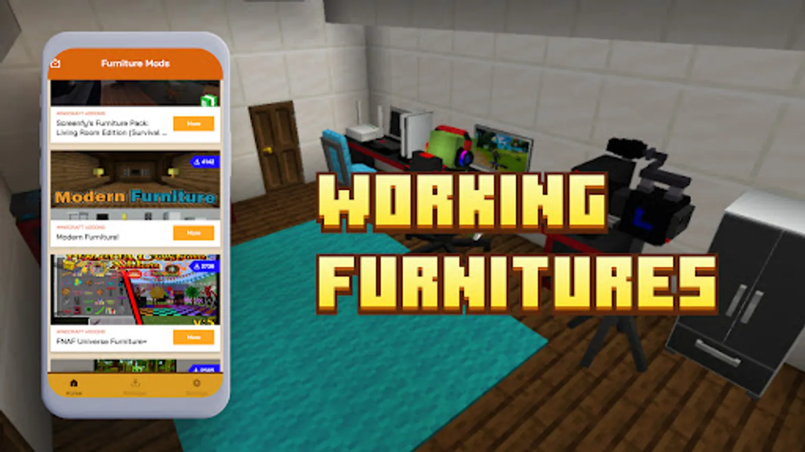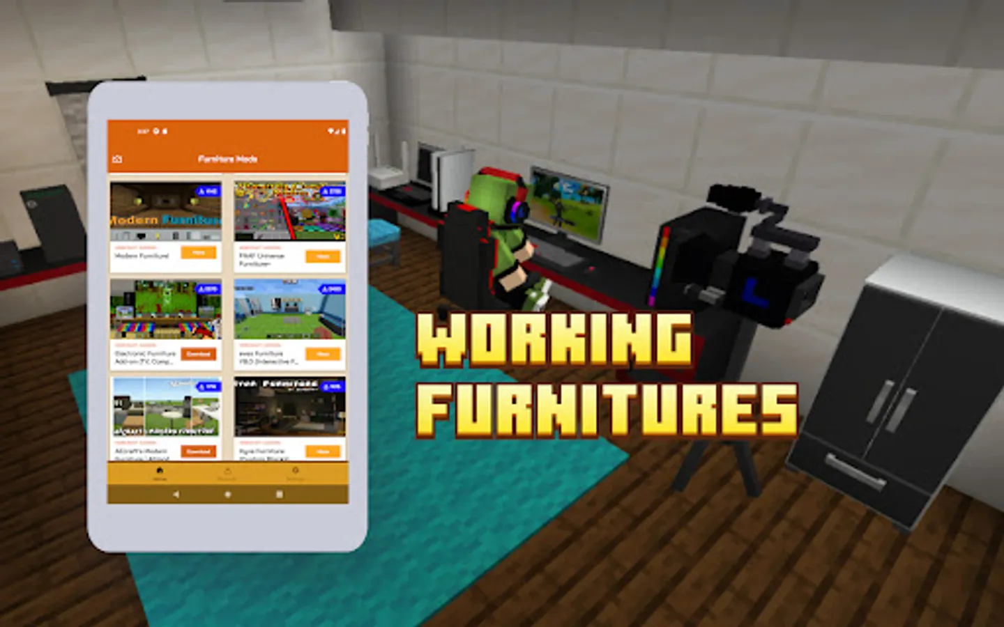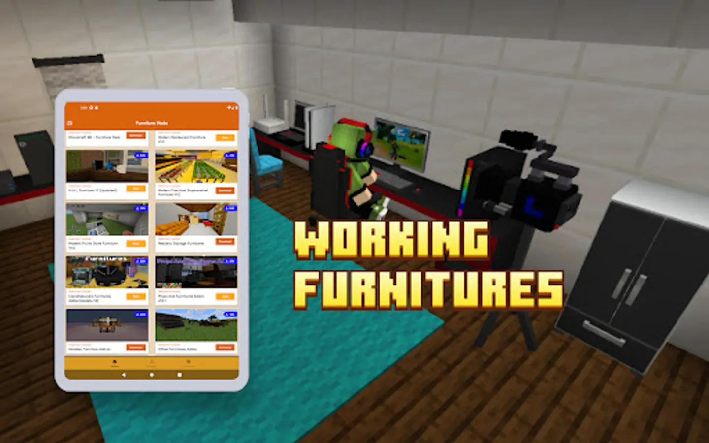 Furniture Minecraft Addons allows you to download and use the most updated and popular furniture addons for minecraft pe mcpe.