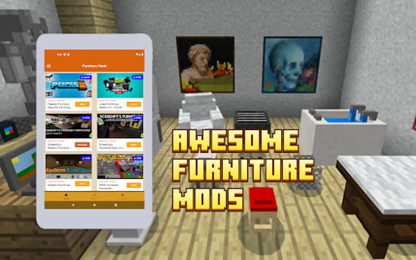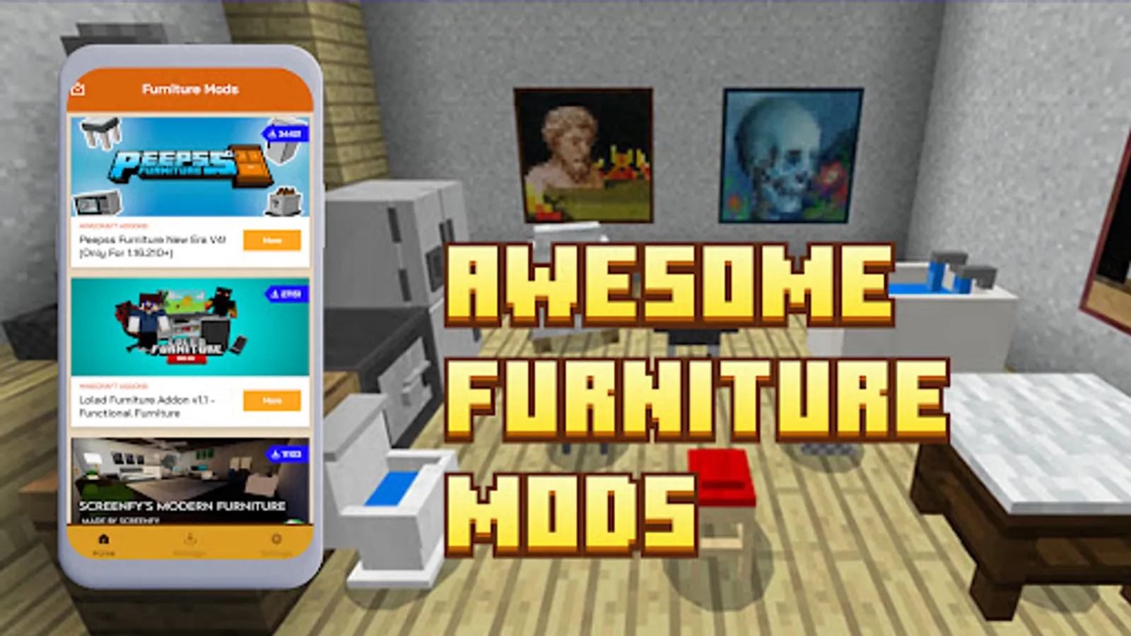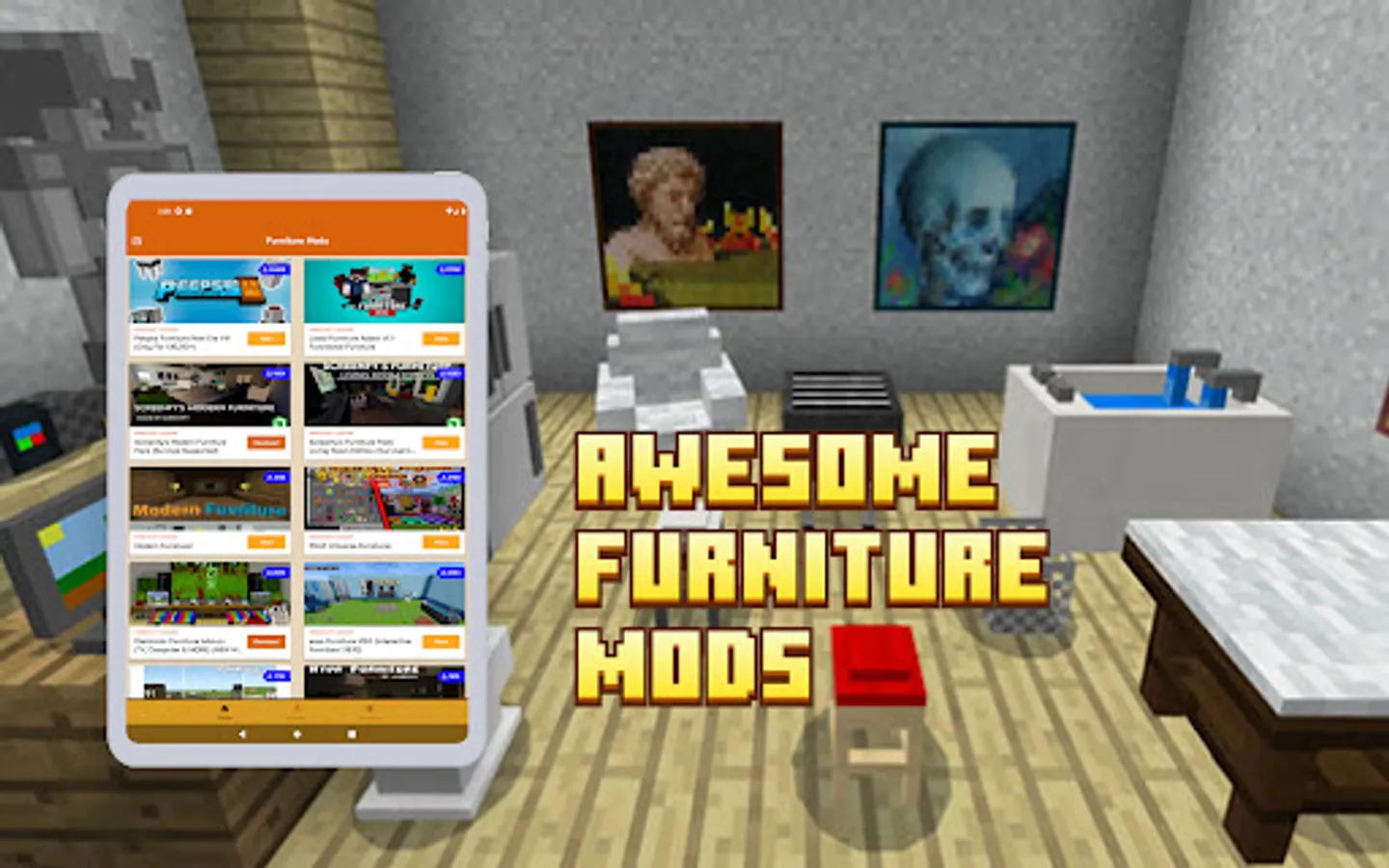 Furniture Minecraft Addons allows you to download and use the most updated and popular furniture addons for minecraft pe mcpe.