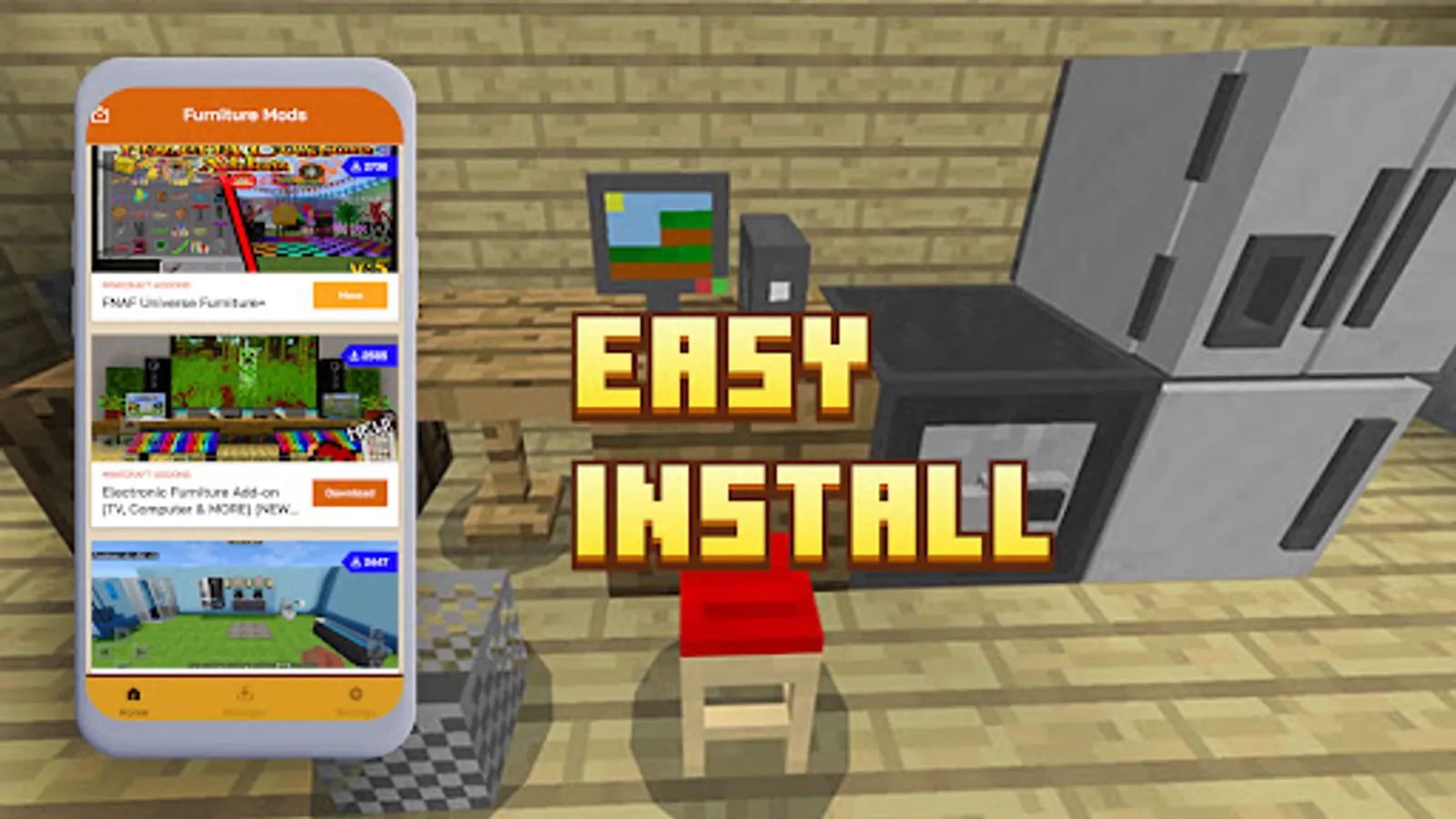Minecraft players are always searching for addons and mods for minecraft to make the gaming session much more enjoyable. When you add new skins, characters or furniture into the game, it really gives you pleasure. We are here with fantastic furniture for minecraft app so you can add any furniture you want and play as long as you want. Moreover, you can install and use our furniture addons for minecraft pe mcpe absolutely free of cost!