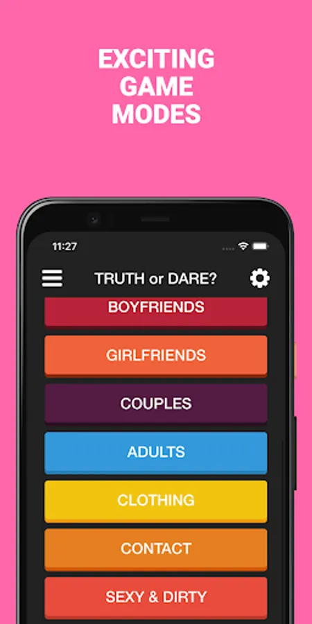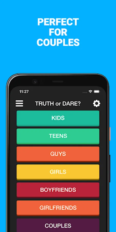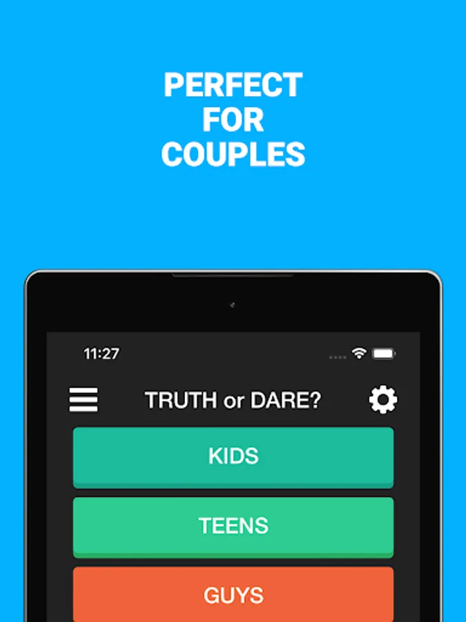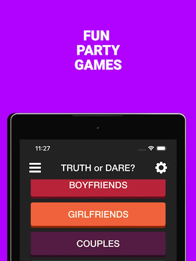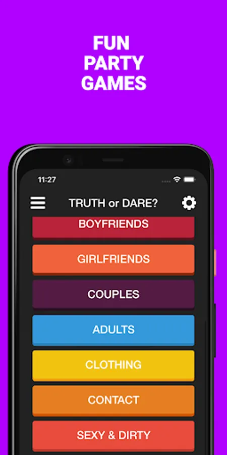 There are thousands of questions. Choose different categories: Teens, Kids, Boyfriends, Girlfriends, Adults, Couples, Sexy & Dirty, Funny & Embarrassing, Guys, Girls. Thousands of best truths and dares from the most innocent to naughtiest you can enjoy with your family and friends. We guarantee that we have one of the most exciting truth or dare questions in any similar game. We worked tirelessly to craft these amazing set of questions! Exciting and unseen dares in different categories will give you the thrill of playing a true game.