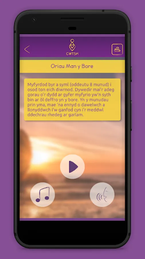 Mae Cwtsh yn hafan i Gymry droi tuag ato er mwyn cychwyn ar y daith o gysylltu’n ddyfnach gyda nhw eu hunain drwy dechnegau myfyrdod sy’n adlewyrchu cynhesrwydd a natur groesawgar y Cymry ac i chi deimlo fel eich bod yn rhoi cwtsh i’ch hun wrth ei ddefnyddio.