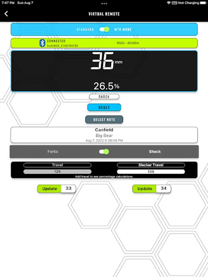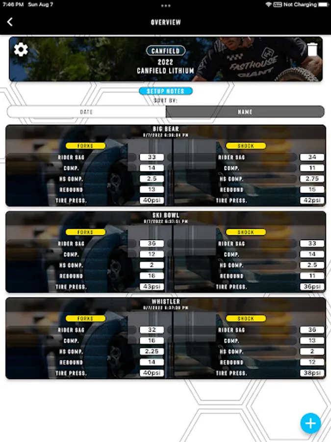 • Suspension Logs: Save and tweak suspension settings for optimal ride quality.