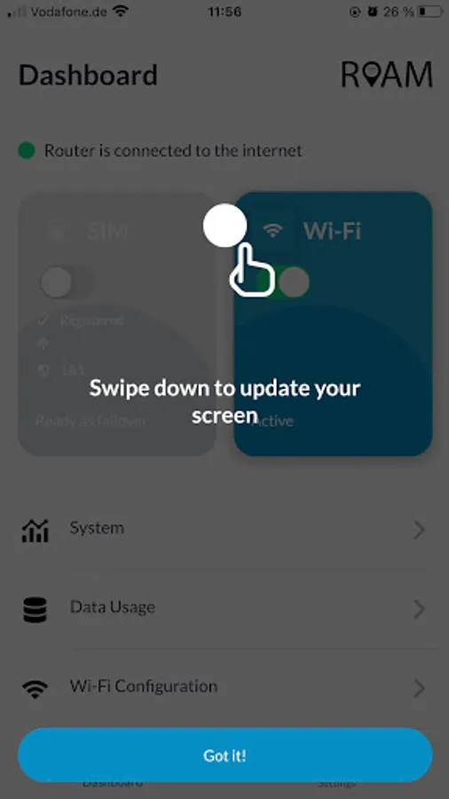 Our powerful roof mount antenna has been designed to maximise 3G/4G signal. Coupled with the router, this creates a reliable and secure Wi-Fi hotspot for your vehicle. Unlike other products, the Roam can also receive Wi-Fi sources, so you are only using data when necessary.