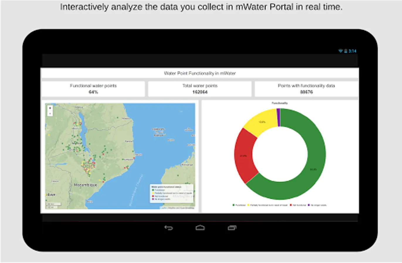• Track data over time for water points, water systems, communities, health care facilities, schools, and other infrastructure