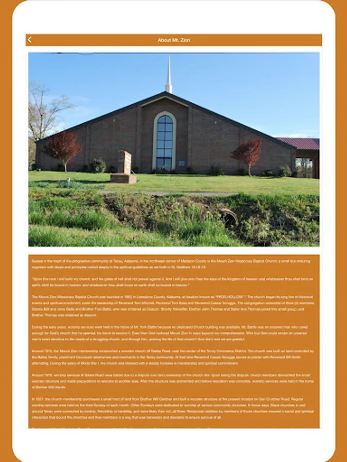 Welcome to the new Mt. Zion Missionary Baptist Church Mobile App.