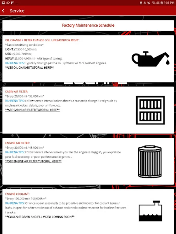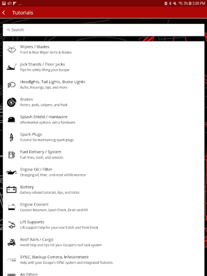 The "Rahrena" app aims to be a one-stop and all-in-one app for Ford Escape owners to have easy access to a vast library of DIY guides for their cars. Below are some incredible and useful content categories within the app: