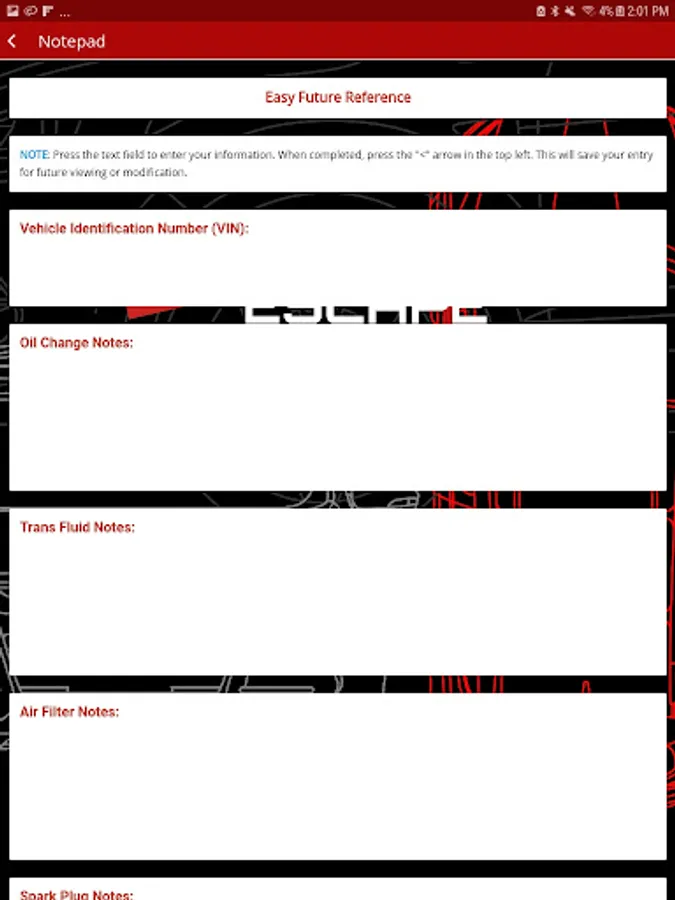 - Notepad to store service pertinent information for future reference