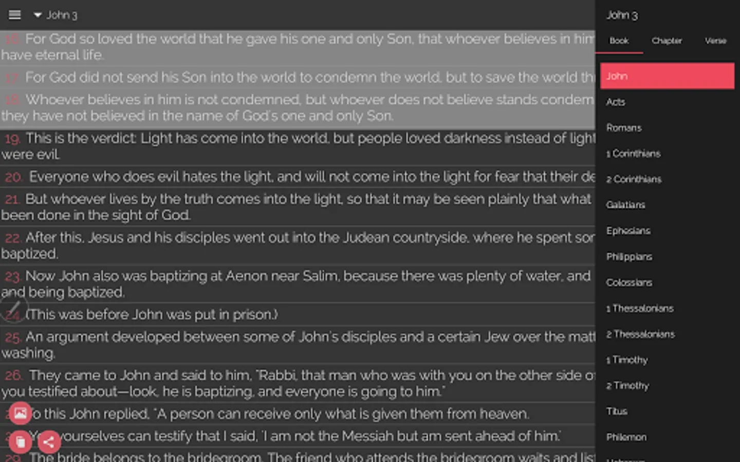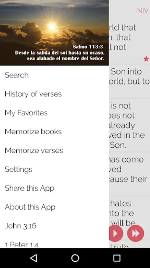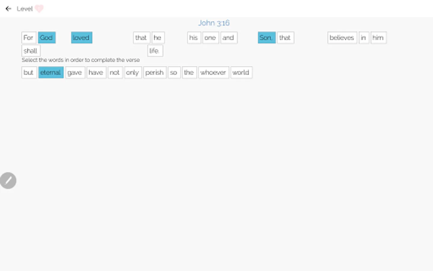 The Bible Jn316 main objective is to support the study and learning of the word of God through the matching of verses or chapters, memorization of the books of the blible and memorization of the verses. It also aims to evangelize and share the verses with images or verses in social networks.
