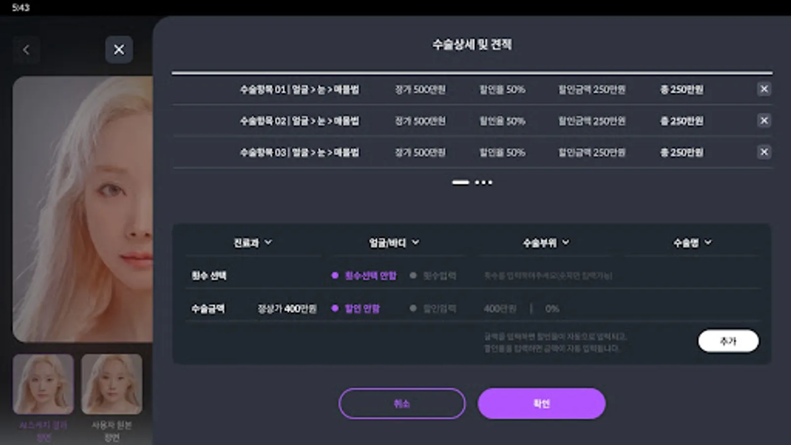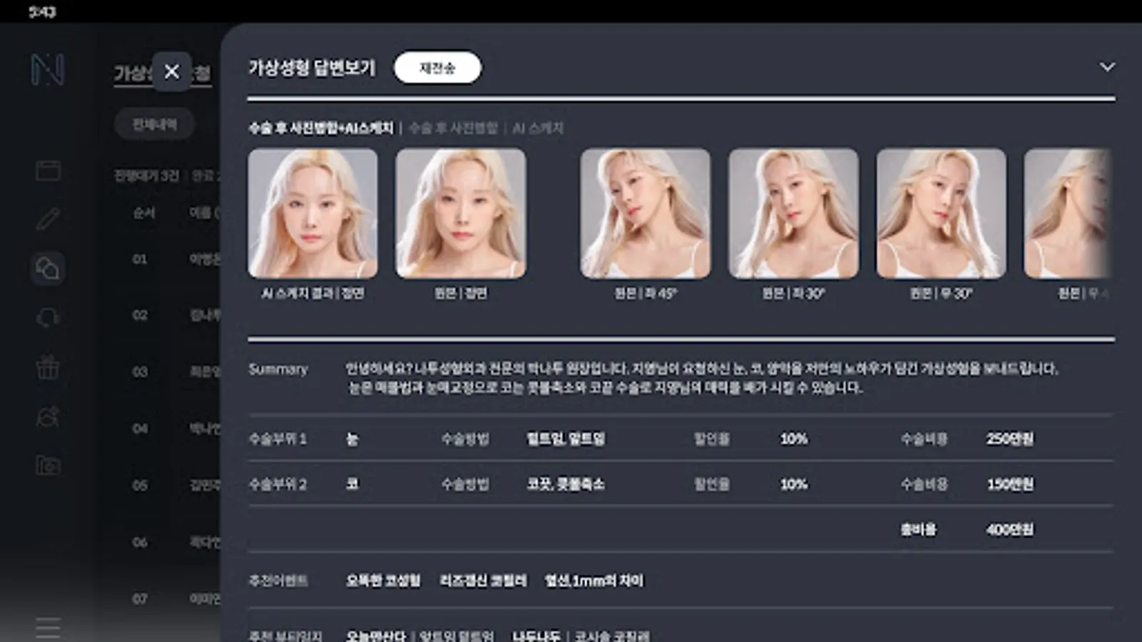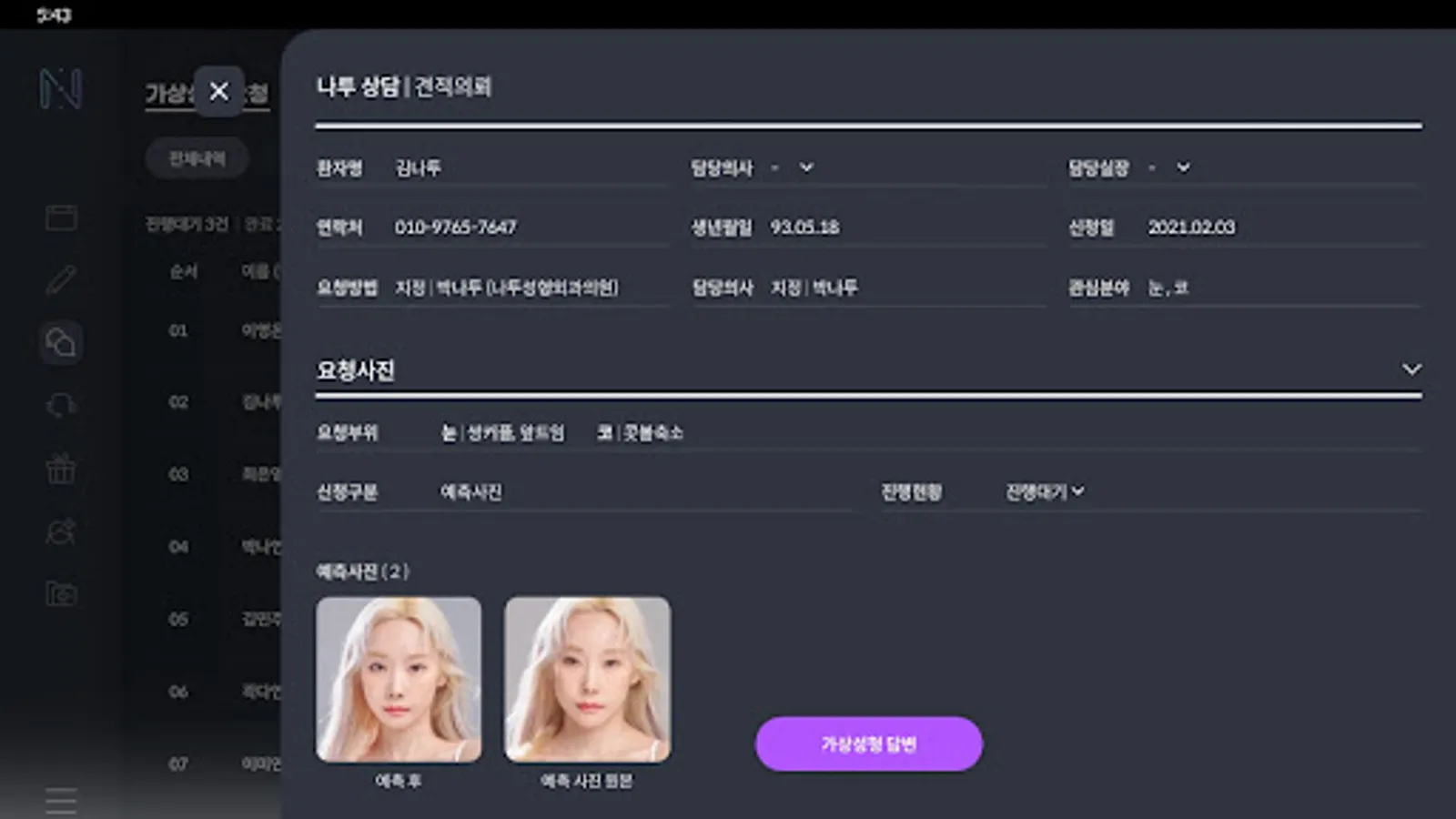 You can send the requested virtual plastic surgery diagnosis and cost in real time through the Natou customer app.