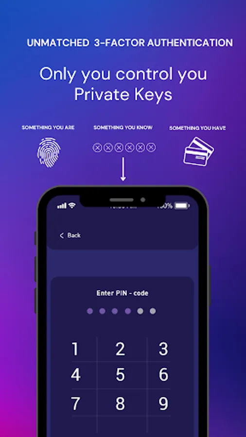 Your NBC Banq wallet protects your digital assets with 3-factor authentication relying on something you are (a biometric marker), something you know (a PIN), and something you have (your NBC Banq Key Card).