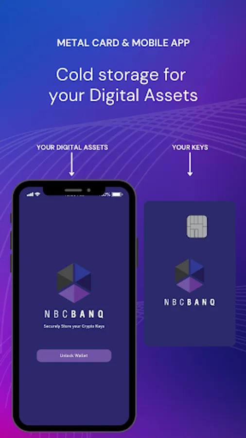 NBC Banq WW CARD is the next-gen crypto and NFT cold storage wallet solution. The NBC Banq Wallet App lets you securely hold the world’s leading cryptocurrencies and NFTs. NBC Banq features an easy-to-use mobile app and a sleek, metal card where you store and control your private keys.