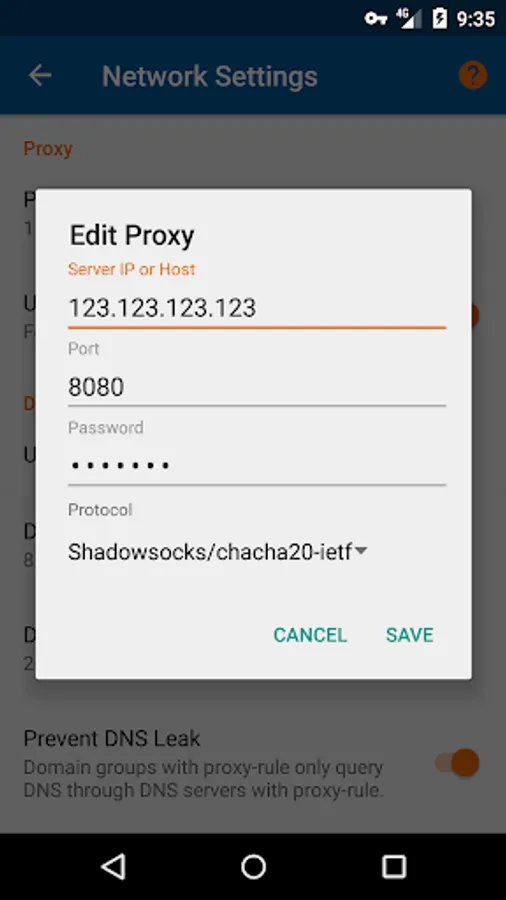 ✔ Custom DNS, change your DNS servers, support DNS query through proxy, and set DNS cache time