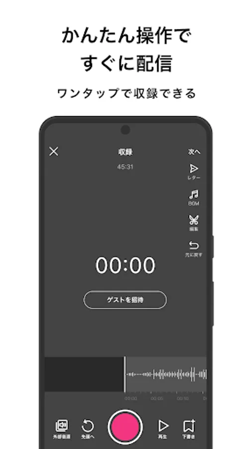 Editing such as cutting and inserting audio and adding BGM can be done easily on the app.