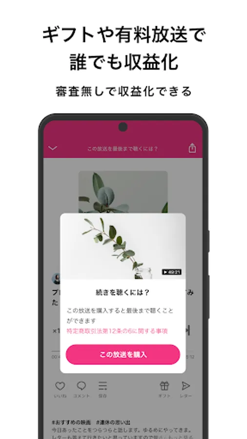 With live streaming, you can broadcast while communicating with listeners in real time with comments and gifts.