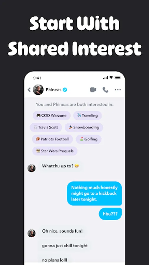 The fastest and safest way to chat with your new friends is to send a message right here on the app! Within the Soda messenger, you can send messages, ice breakers, GIFs, and audio messages.