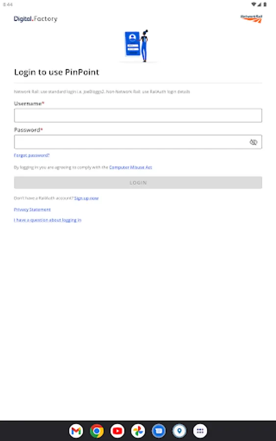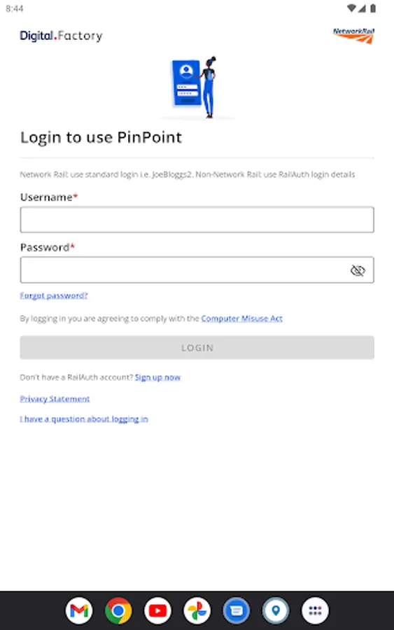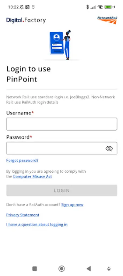 If you are a new non-Network Rail user, please follow the steps on the login page to sign-up for an account and find guidance on how to set up two factor authentication.