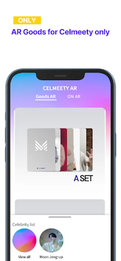 Focus camera to the photo card and watch the video of a celebrity in augmented reality.