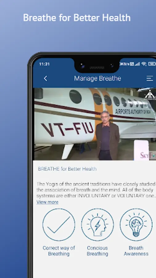 Airports Authority of India(AAI) has worked closely with the experts of the Yogic Tradition and medical experts, to develop simple breathing exercises that can help in managing all kinds of stress. The session SKYFIT organized by AAI along with yoga and breath works experts, can help the personnel involved in aviation industry at various levels, in learning these simple yet effective breathing techniques, to manage stress in a remarkably efficient manner. The exercises have been specially designed for Pilots, Cabin Crew, Air Passengers, Air Traffic Controllers, Ground Handlers and Flight Attendants