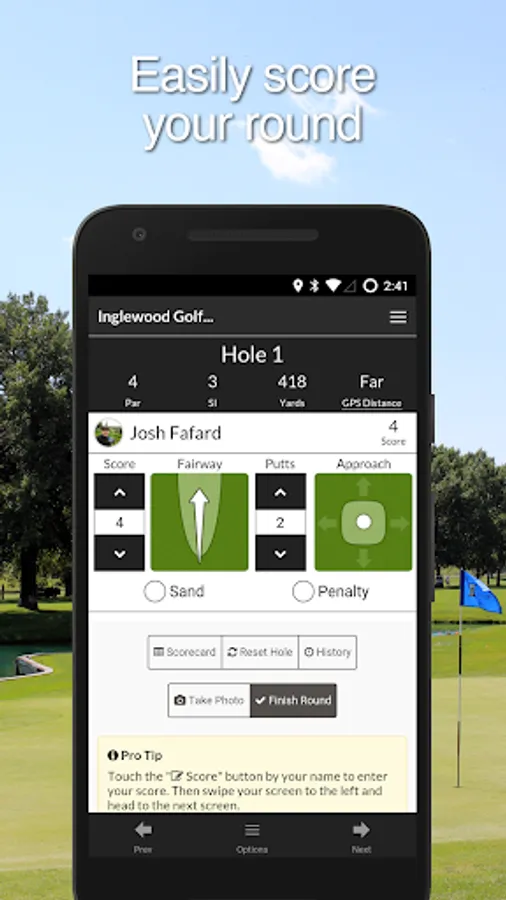 - Track your score for any golf course