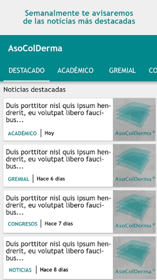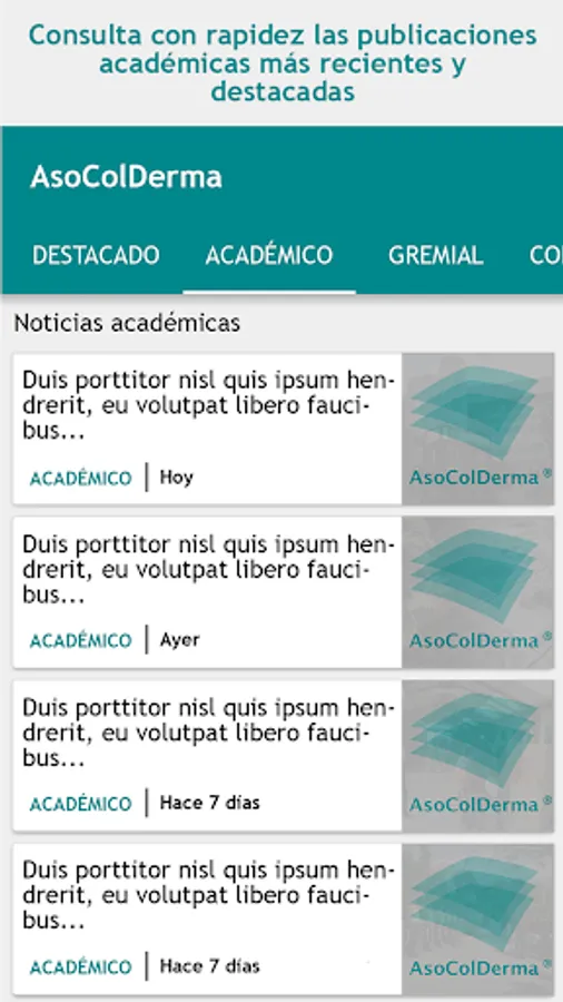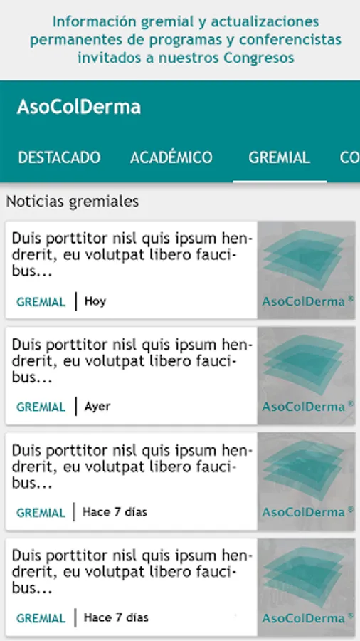 Get the latest news from the Colombian Association of Dermatology, congresses, trade union information and scholarly content.