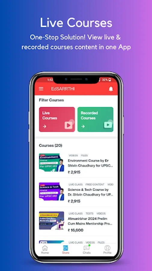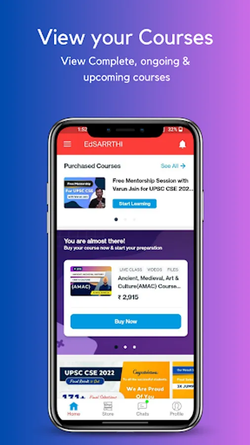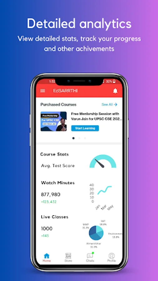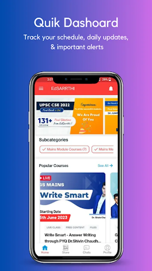 EdSARRTHI is a learning app that offers courses and mentorship for UPSC CSE Examination. The app features an intuitive interface that enables users to easily access course materials, take mock tests, and participate in live classes.