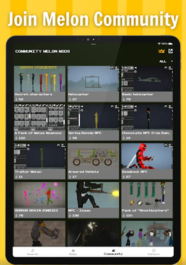 With a simple interface and optimized for mobile devices, our Addons & Melon Playground Mods can take your sandbox world to the next level by unlocking full potential of modding. You can easily download many popular melon playground mods and it will be automatically imported directly into your game.