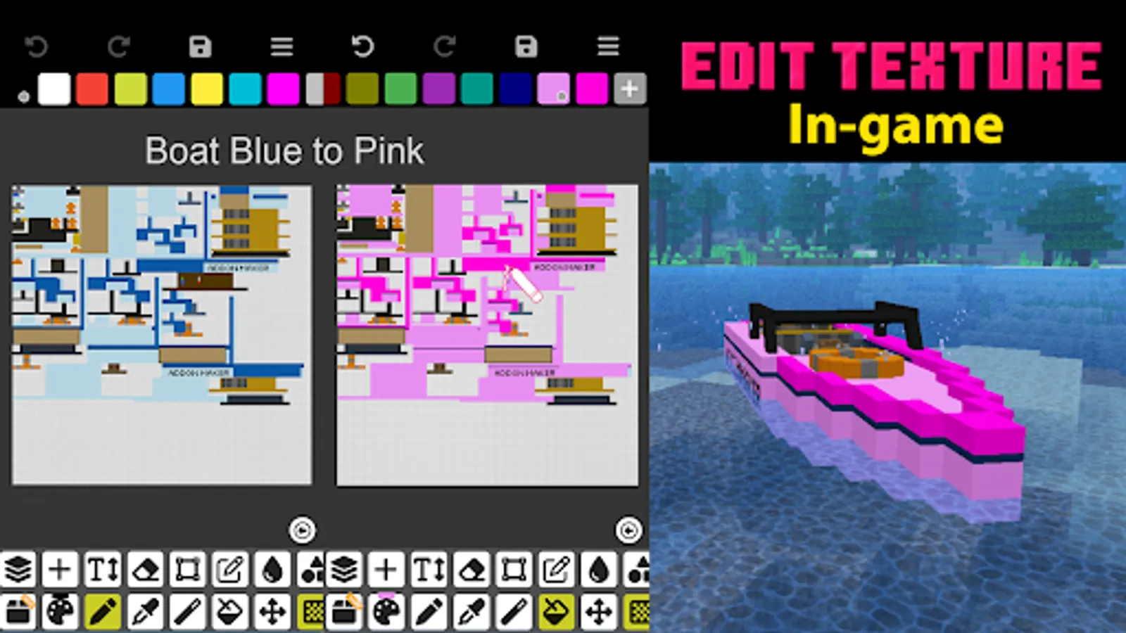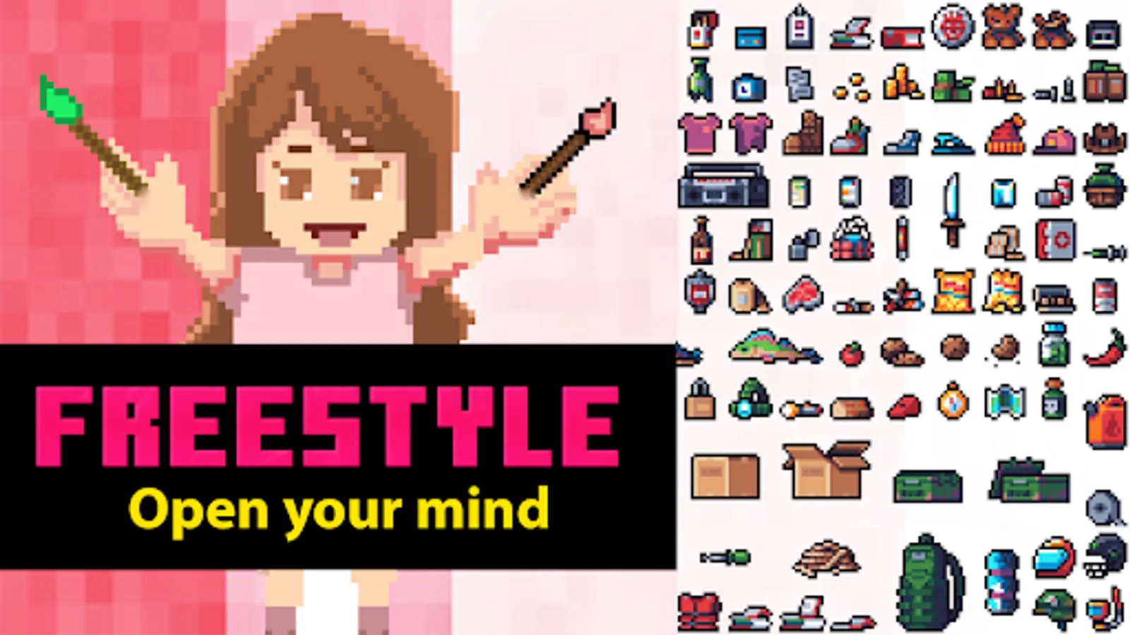From the app AddOns Maker for Minecraft (MAM), now you can upgrade the Customize Function as a pixel art generator. Unlimited ability to create pixel art, weapons, skins, behaviors, etc., and direct import to your game.