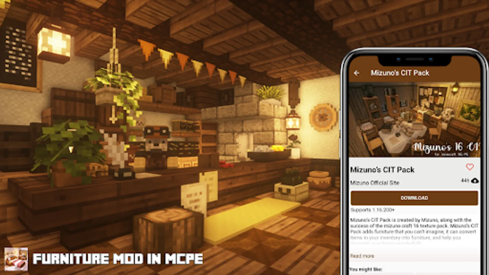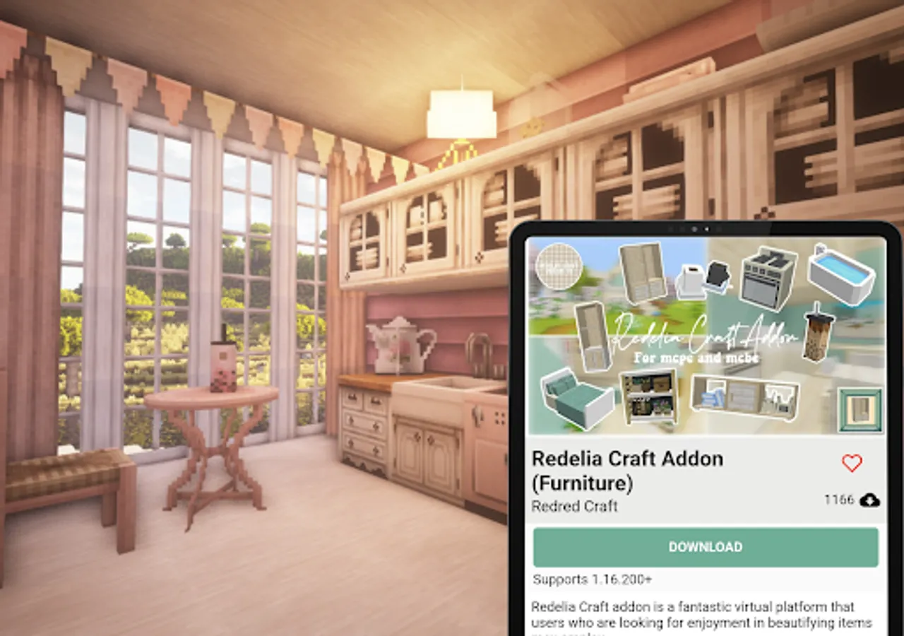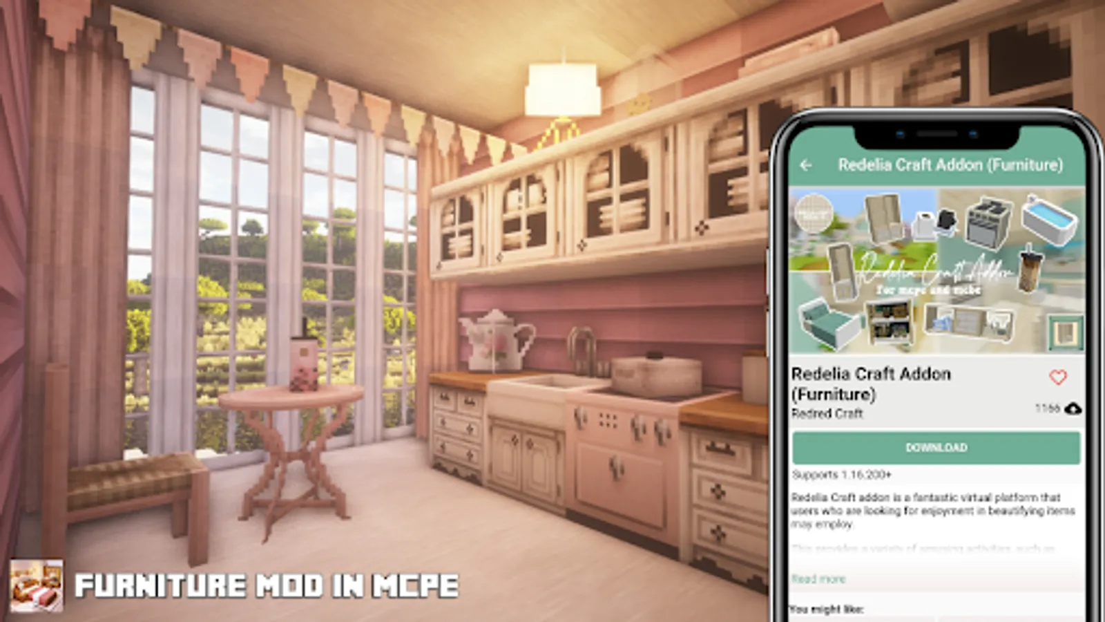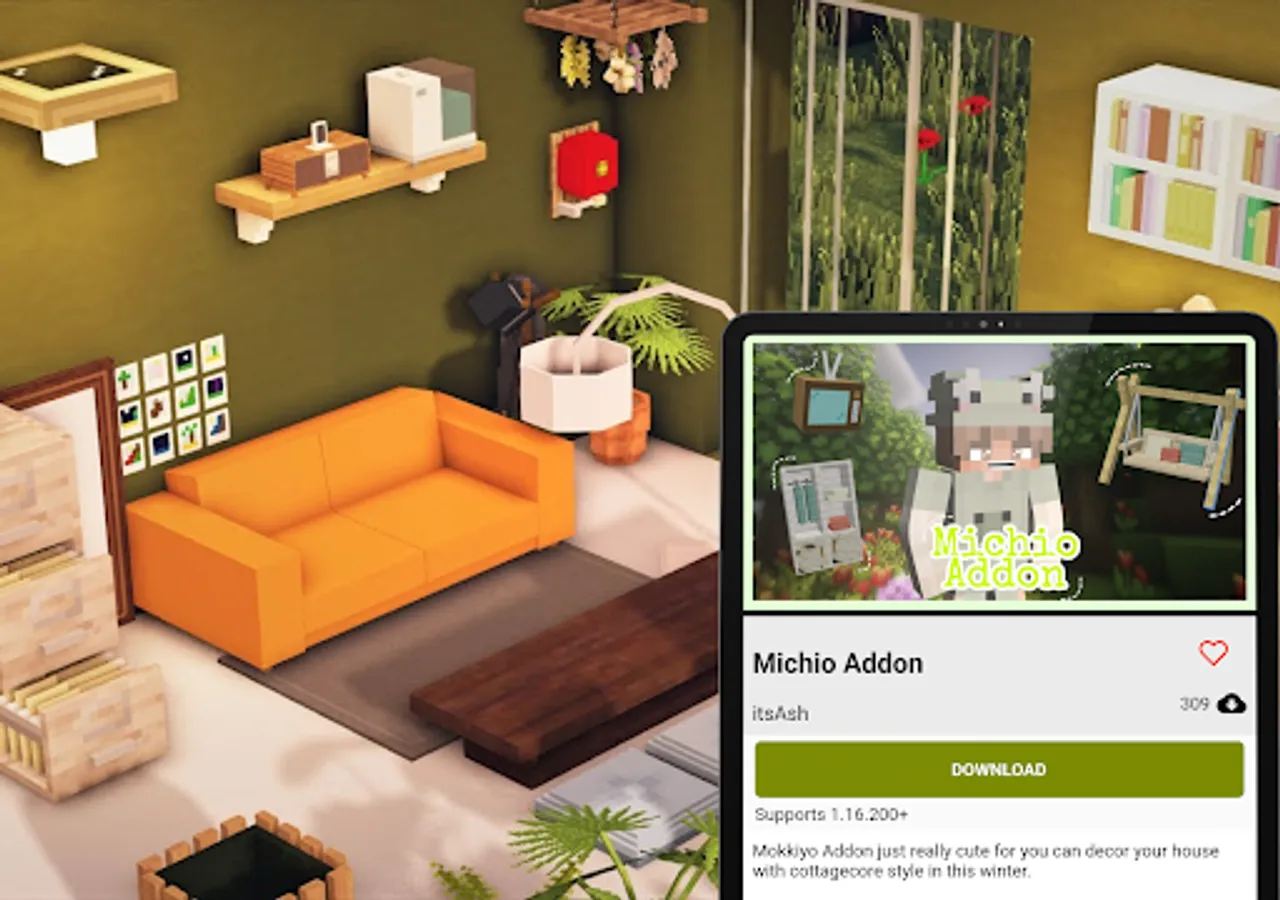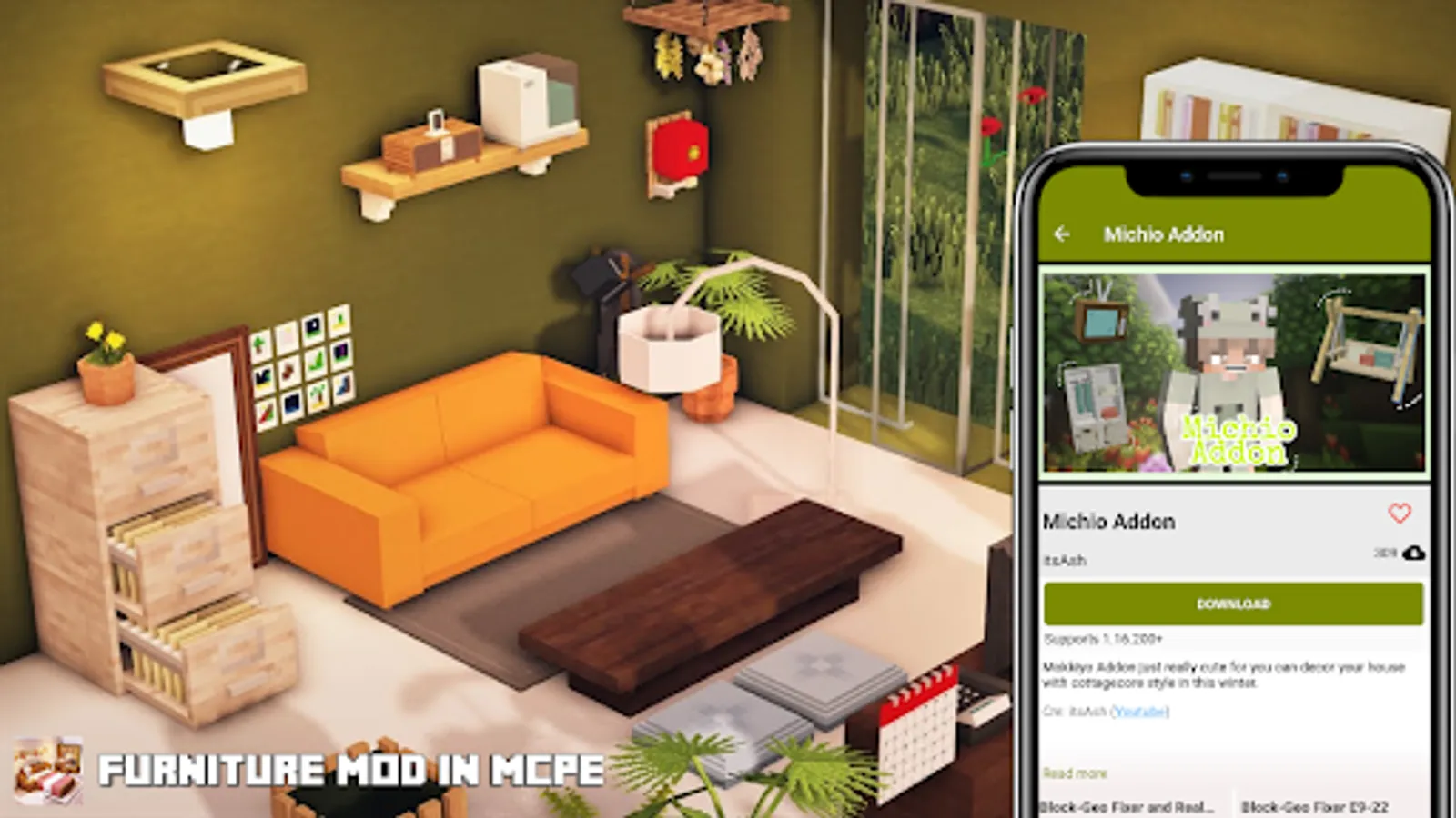 This Furniture decor for Minecraft PE add you many cool things from modern furniture to cottagecore minecraft furniture mod such as Loled furniture, Furnicraft, Mizuno’s CIT Pack, Peeps Furniture, MineFurniture, Umak Retro Furniture, Kawaii decor furniture, Redelia craft addon, Cocricot mod, Diorama craft addon, Kiyomi craft addon, Mitoko addon, Hananancraft BE addon, Michio addon, Redred craft addon, Morriz Craft, Swaggy craft addon, MiniaTuria addon,...