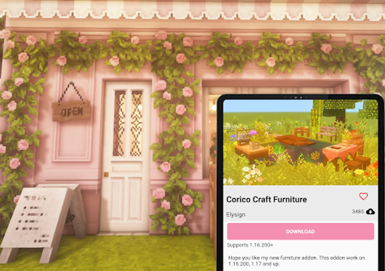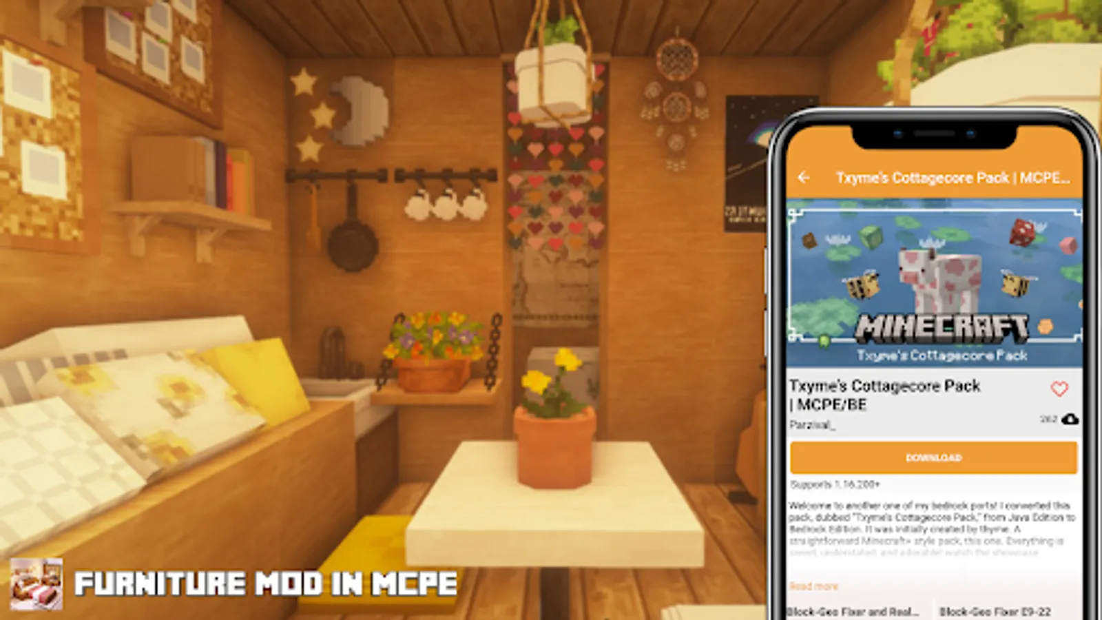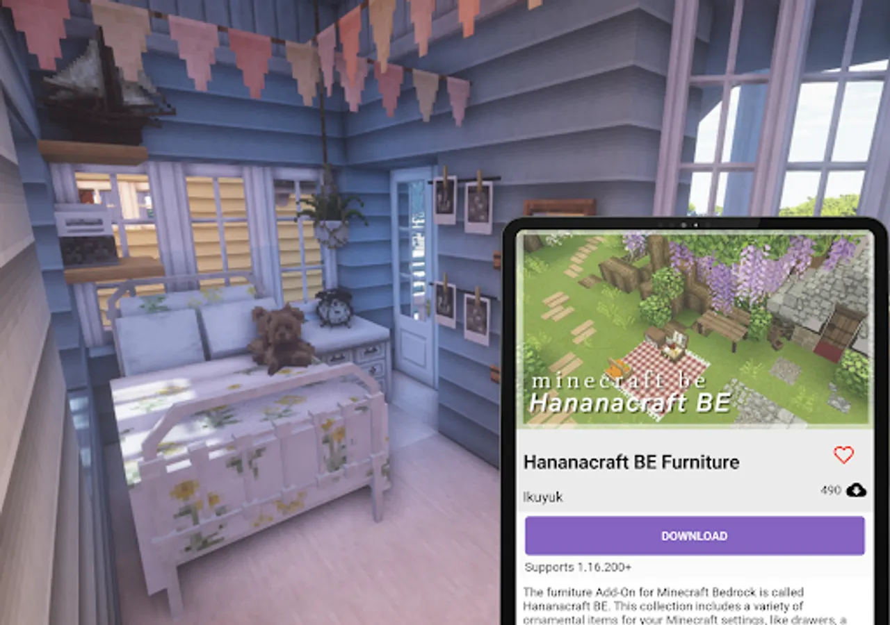 Unleash your creativity by editing and customizing furniture using the app's built-in blockbench. Upload and share them with the community or just decorate cottagecore minecraft house by choosing to import your favorite add-on packs directly into the game: