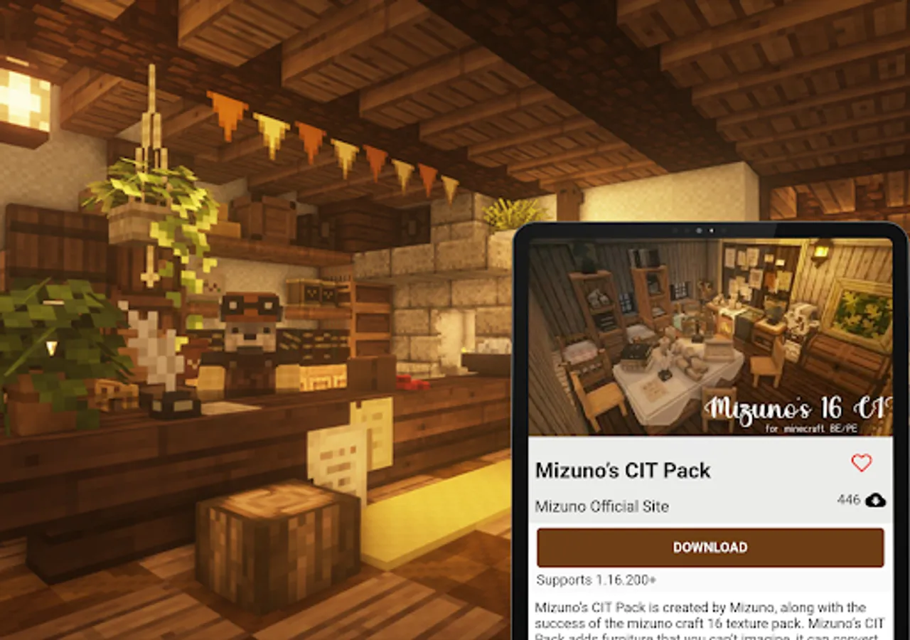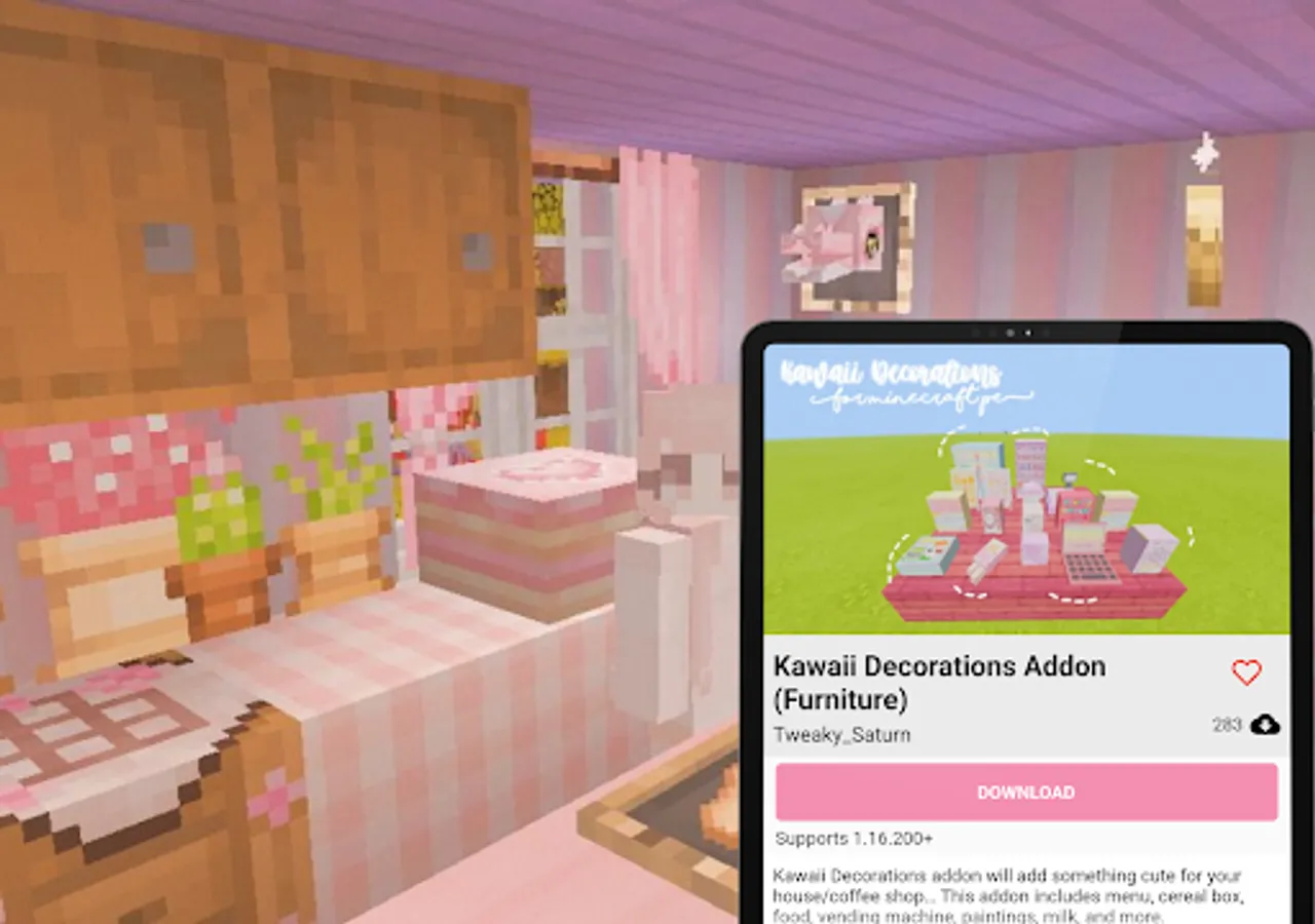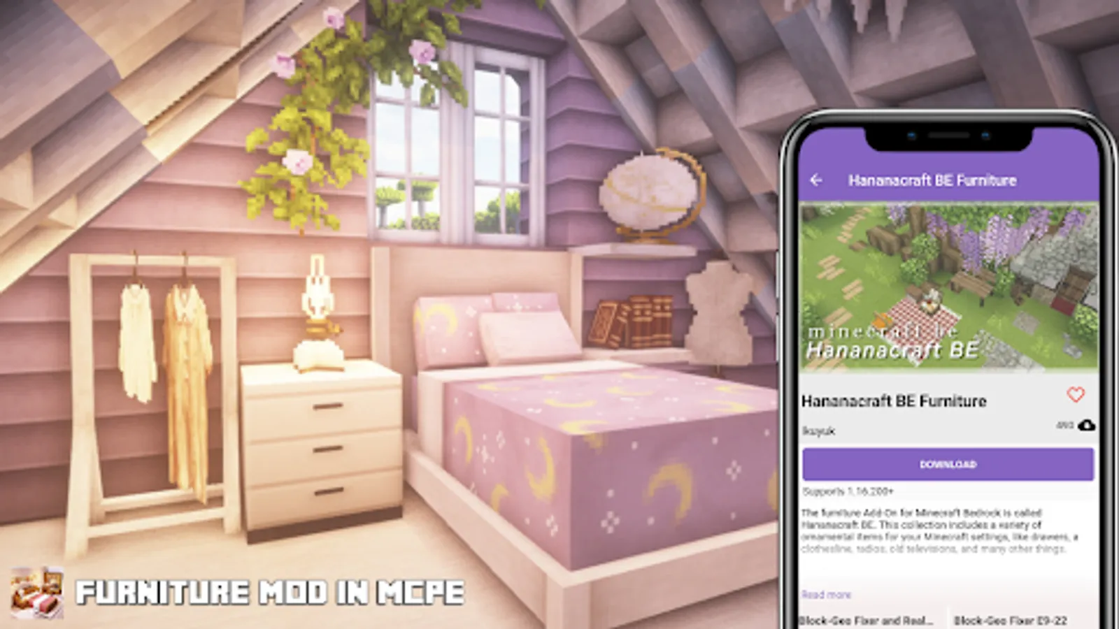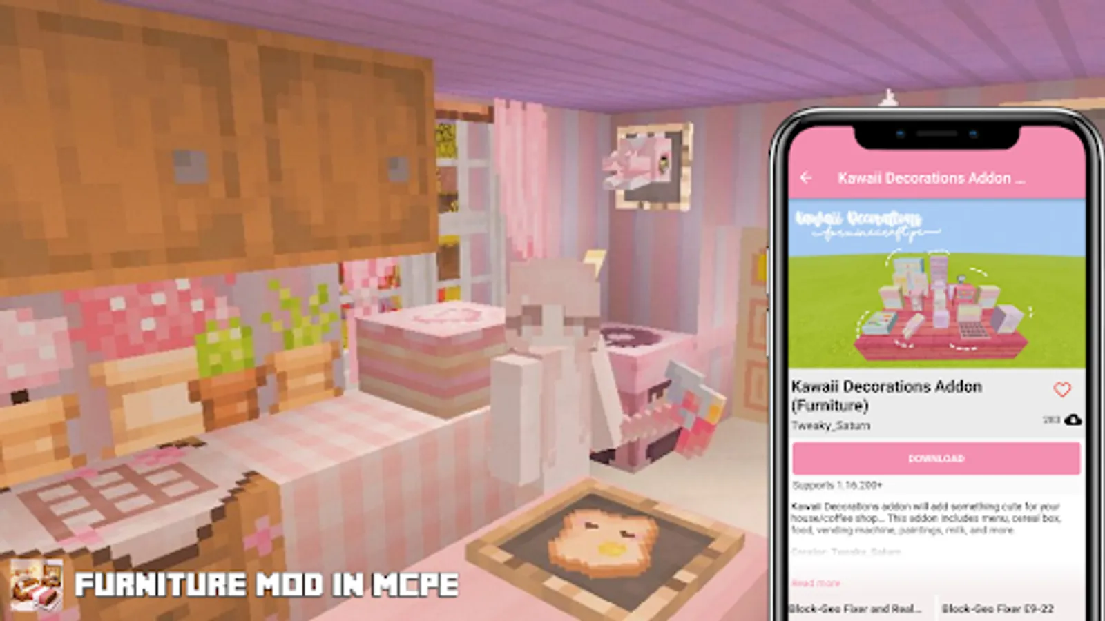 Unleash your creativity by editing and customizing furniture using the app's built-in blockbench. Upload and share them with the community or just decorate cottagecore minecraft house by choosing to import your favorite add-on packs directly into the game: