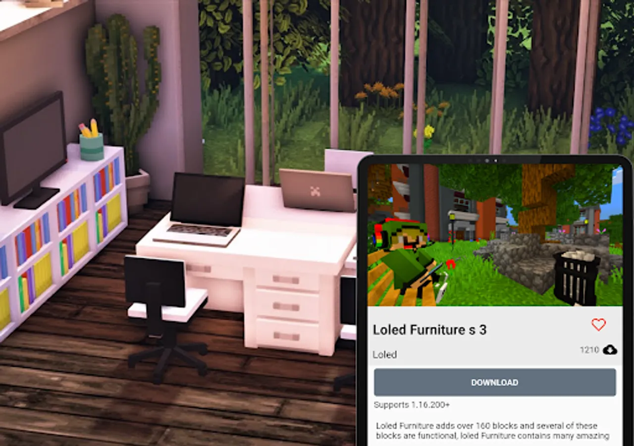 Furniture mod for Minecraft brings the full joy of creation through your favorite aesthetic minecraft game.