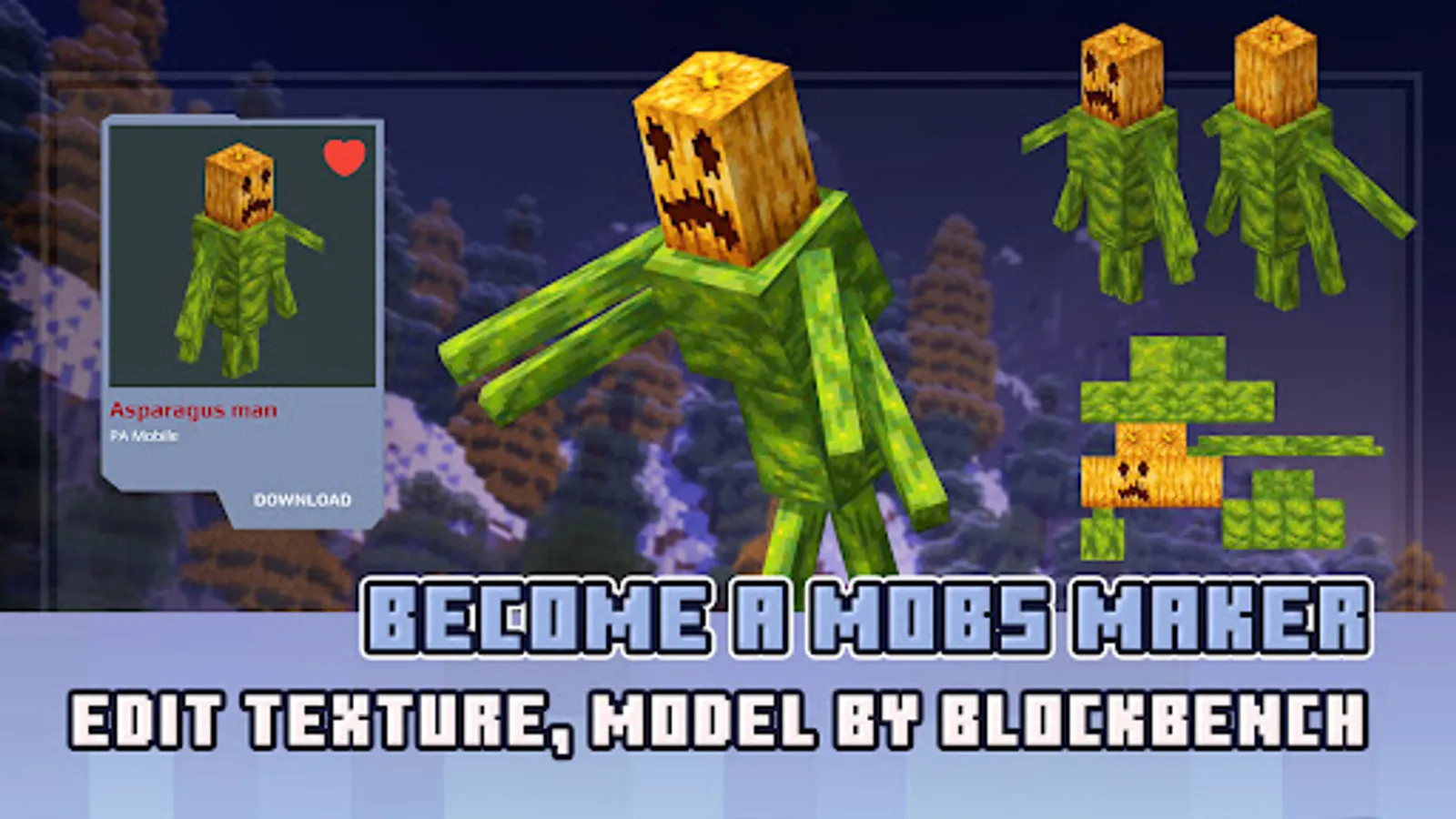 Toolkit for Minecraft Mobs Maker professionally! Mobs Maker for Minecraft PE app is inspired by Minecraft Addons Maker (MAM) users who would like to make their own addons in a professional and quick way without coding, moving cubes, or drawing skills.