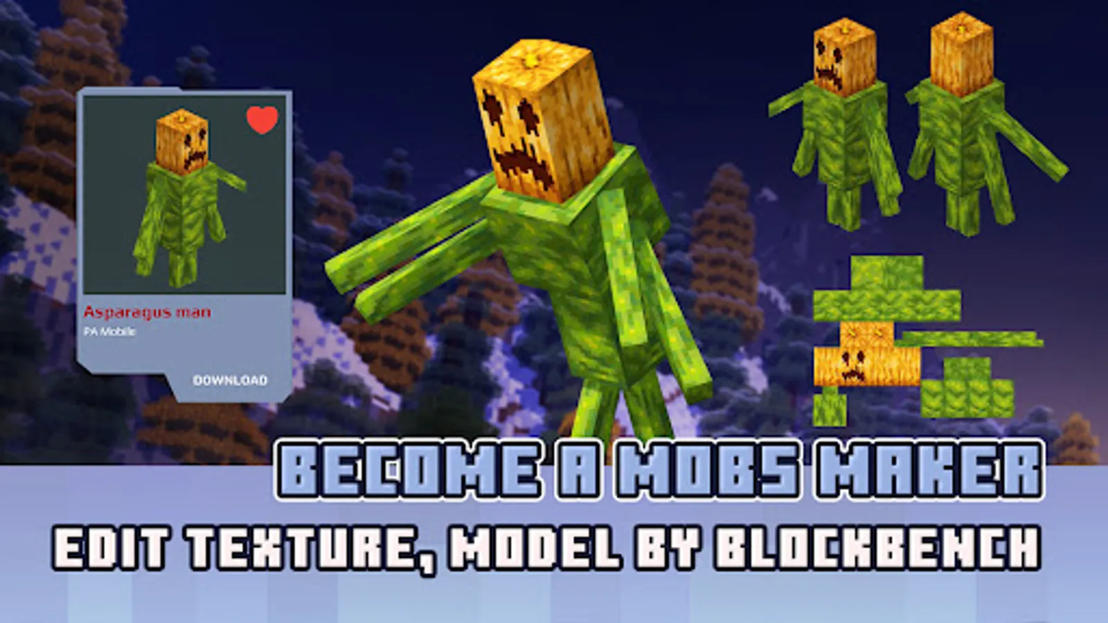 Mobs Maker for Minecraft PE is a toolbox for a mods creator to edit official mobs or make customizable player models. Especially now with our app, you can create mobs / mods for Minecraft and easily share mobs with anyone! Accessed the available list mob collection from our MCPE community.