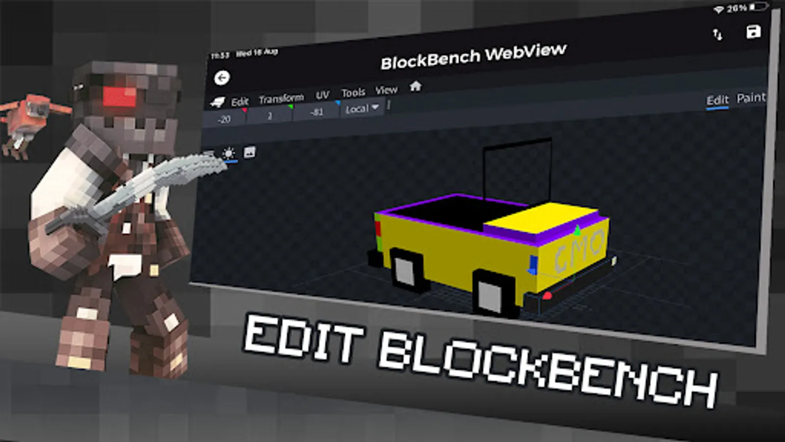 An easy-to-use toolbox for Minecraft mod creators or editors! Quickly access available Minecraft 3D models or 3D skins, download and custom like a real addons maker without block bench skill.