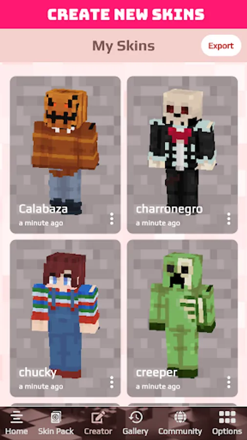 - Effortlessly export your skin mcpe and import them directly into Minecraft.